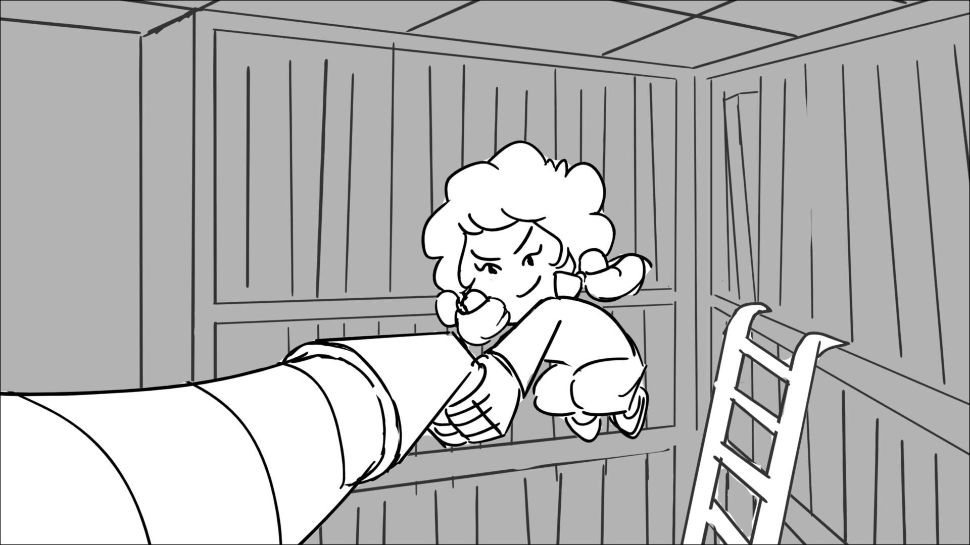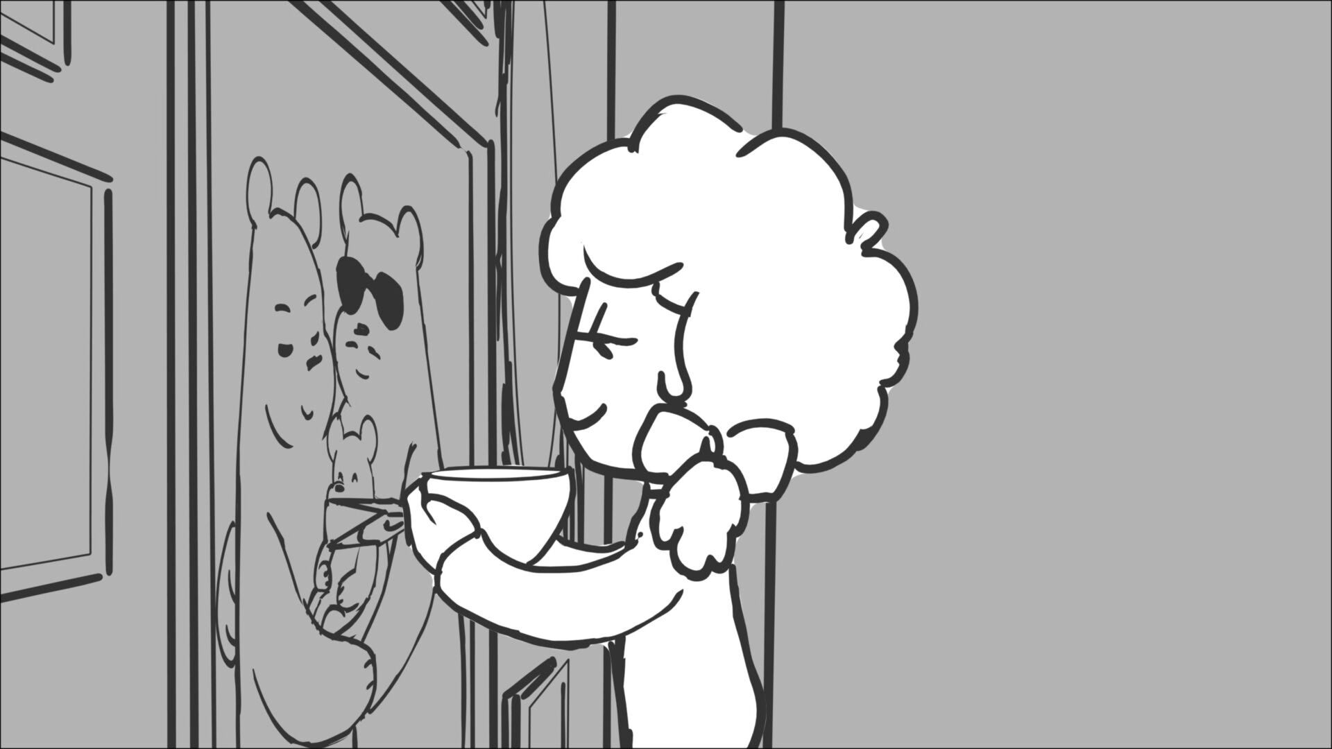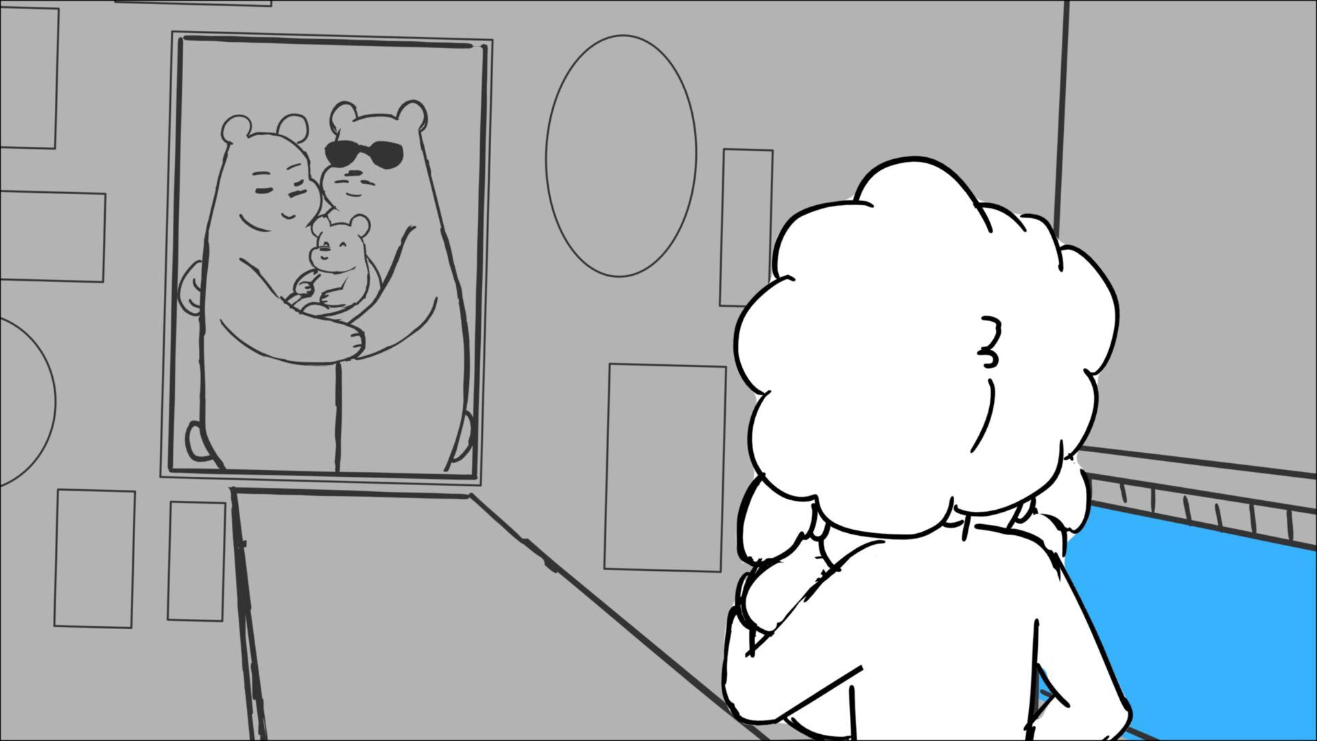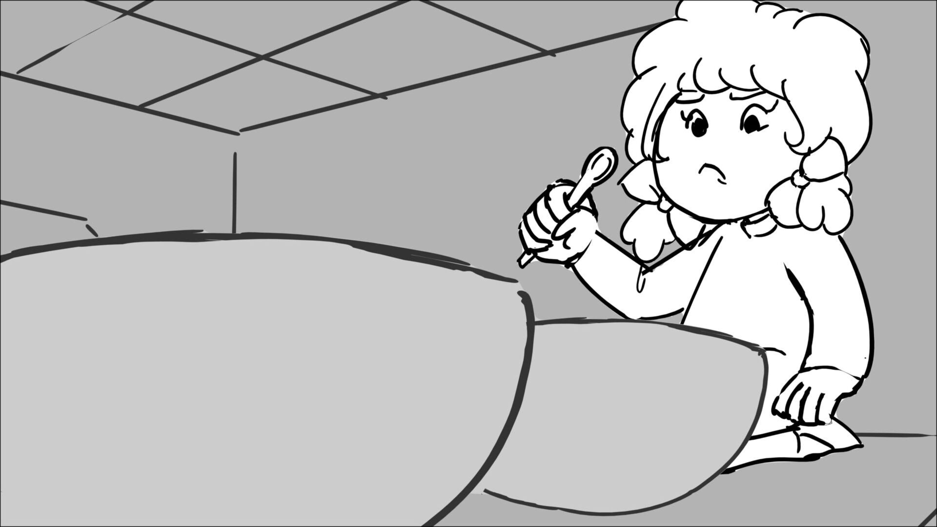 This sequence I had challenged myself to do in 3.5 weeks between November and December, playing around with a more simplified, silly style suited for television. For context: Goldilocks is a seasoned secret agent in a world that is something like “Spy Kids” meets “Shrek.” The Three Bears a crime family that have gotten their paws on a glowing McGuffin, and it’s Goldilock’s job to acquire the goods!