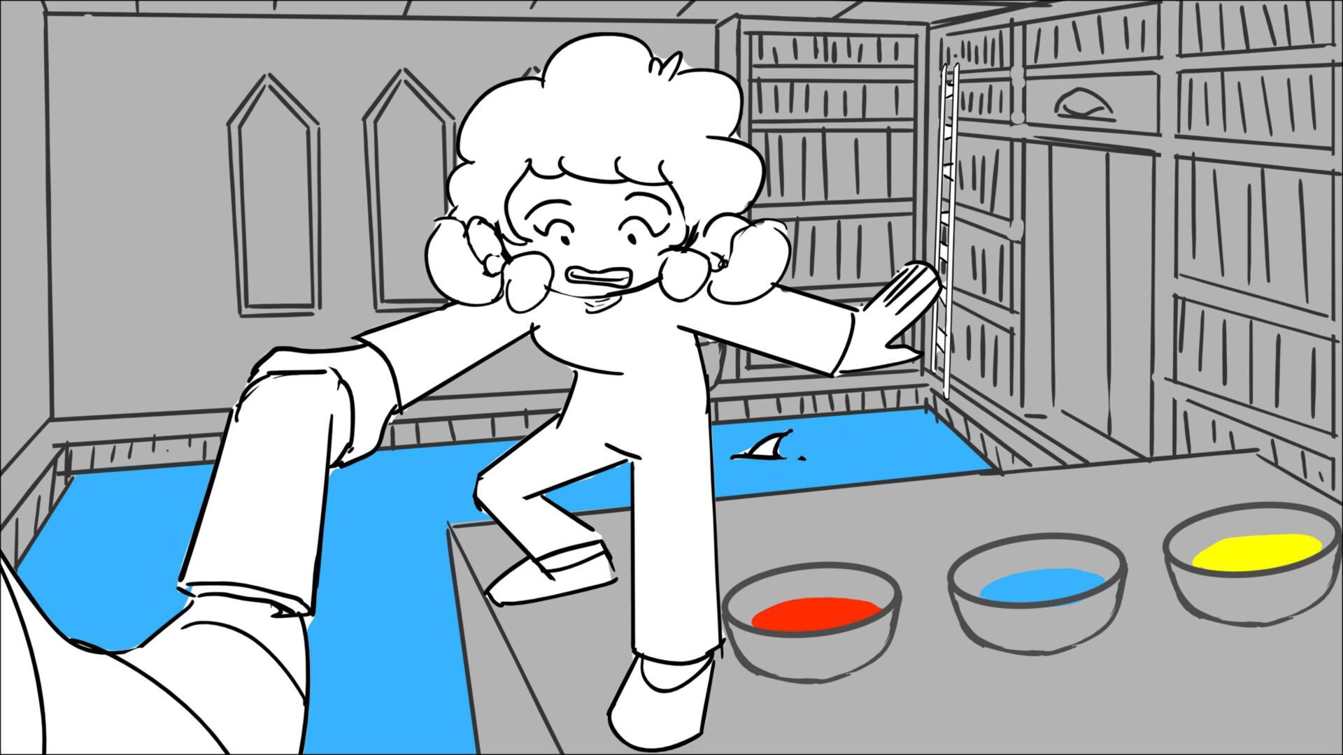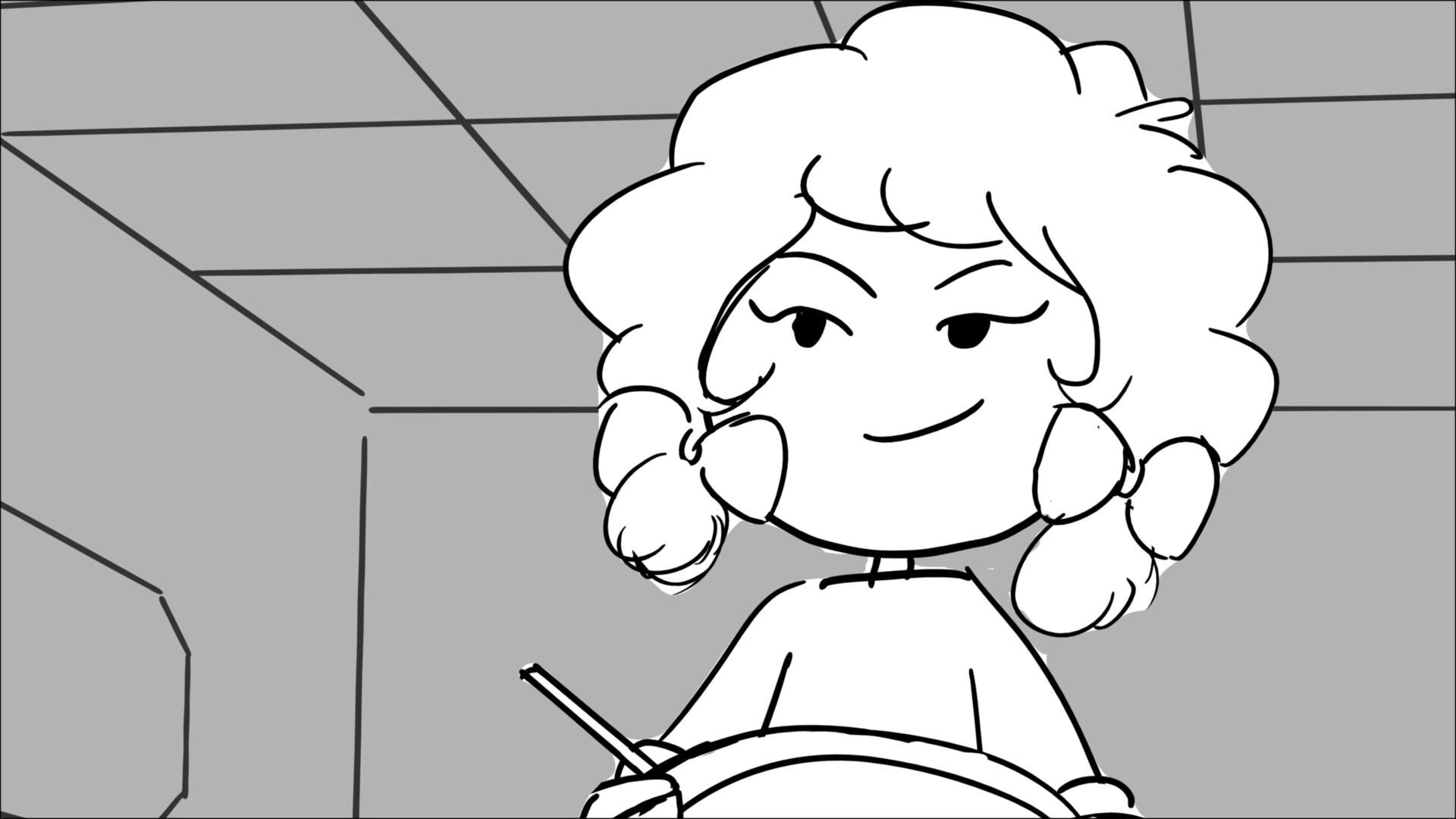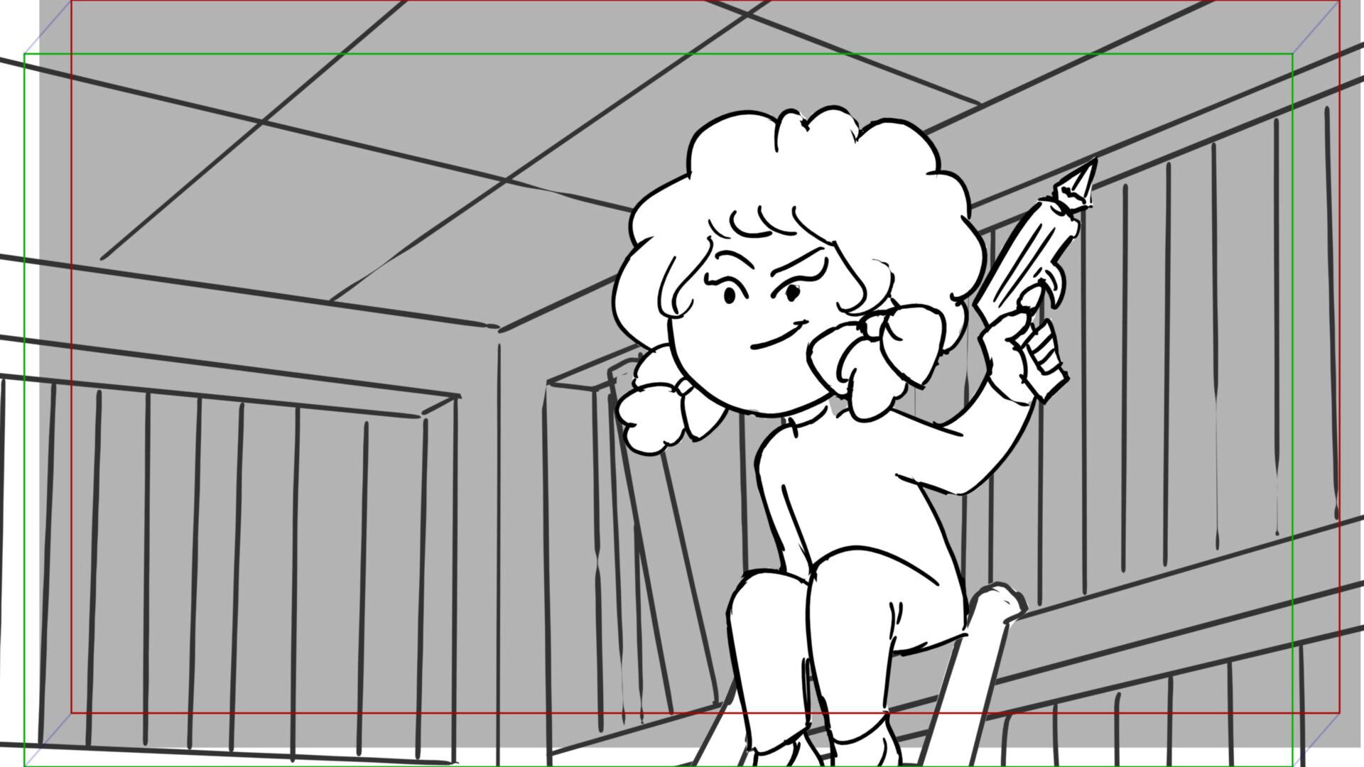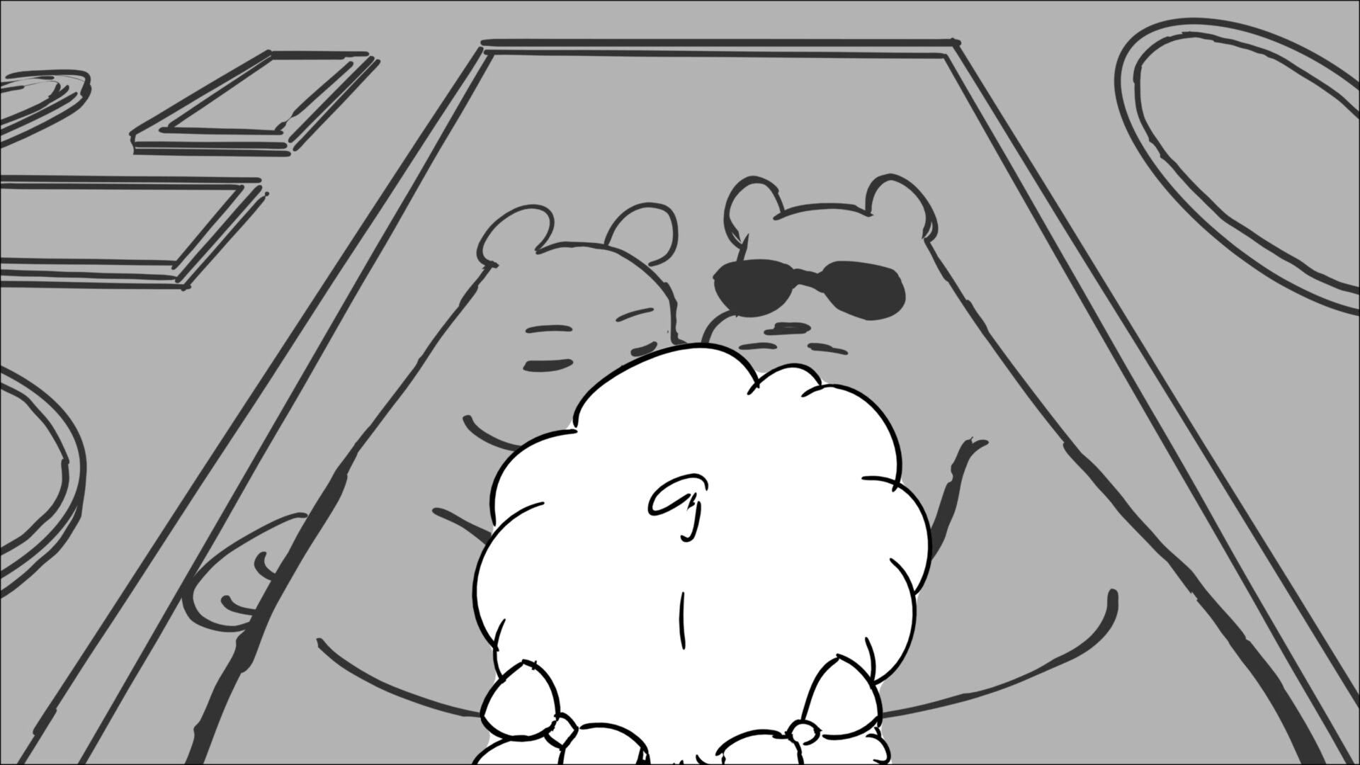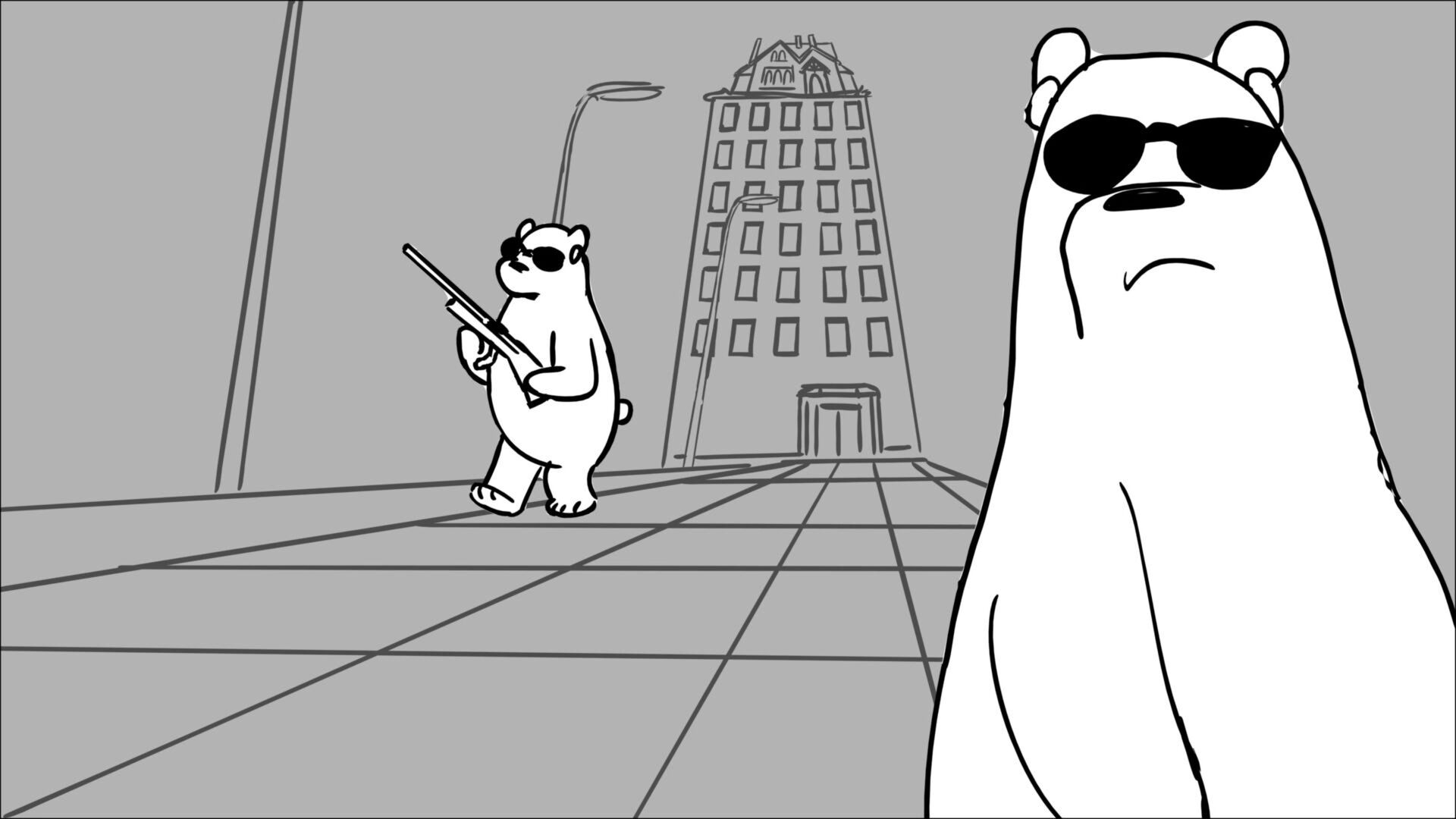 This sequence I had challenged myself to do in 3.5 weeks between November and December, playing around with a more simplified, silly style suited for television. For context: Goldilocks is a seasoned secret agent in a world that is something like “Spy Kids” meets “Shrek.” The Three Bears a crime family that have gotten their paws on a glowing McGuffin, and it’s Goldilock’s job to acquire the goods!