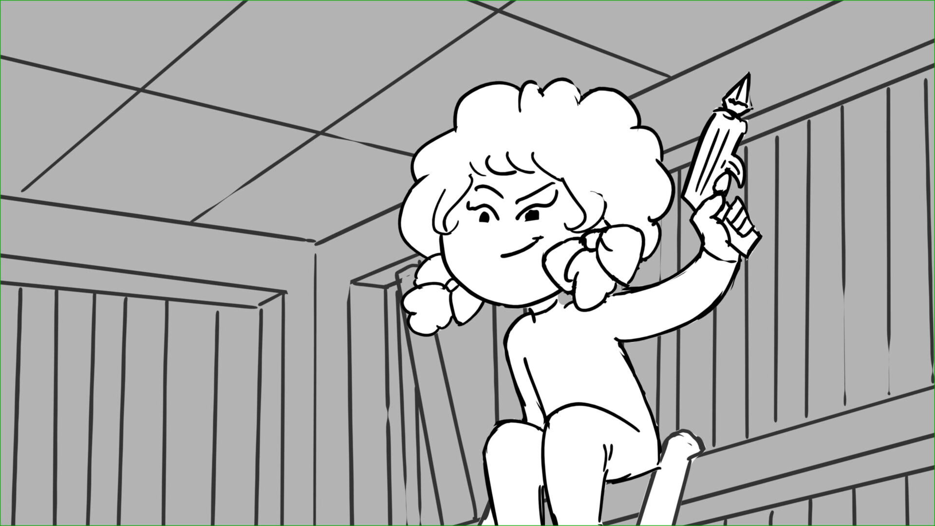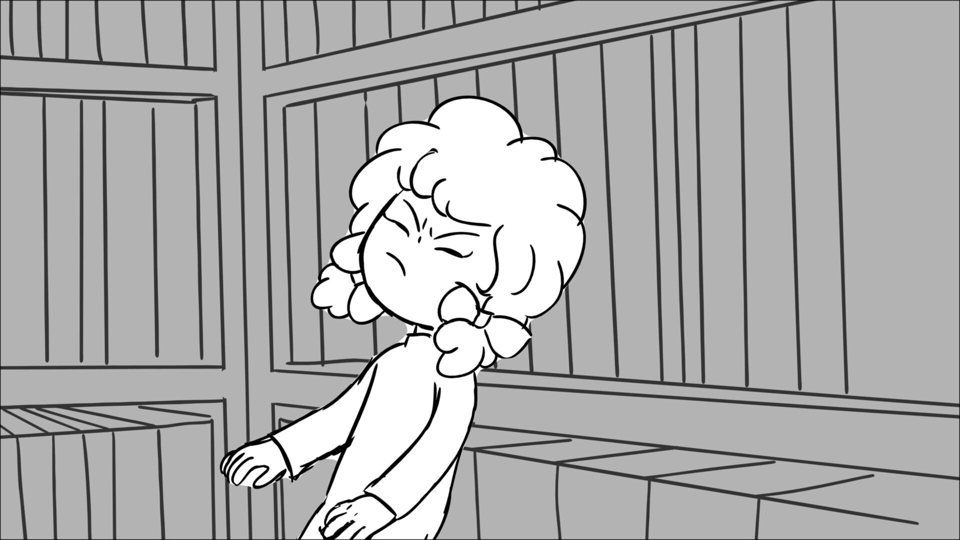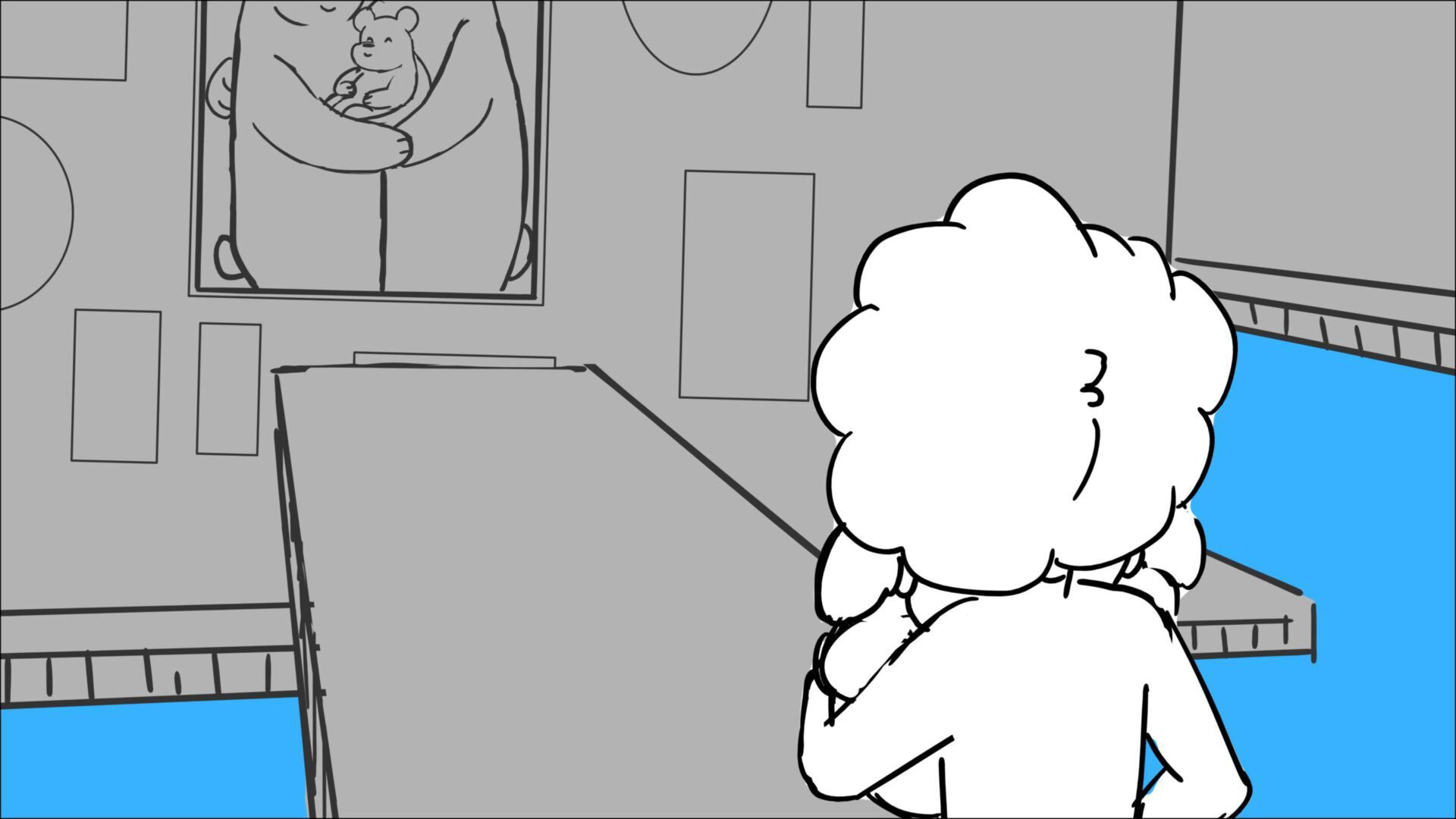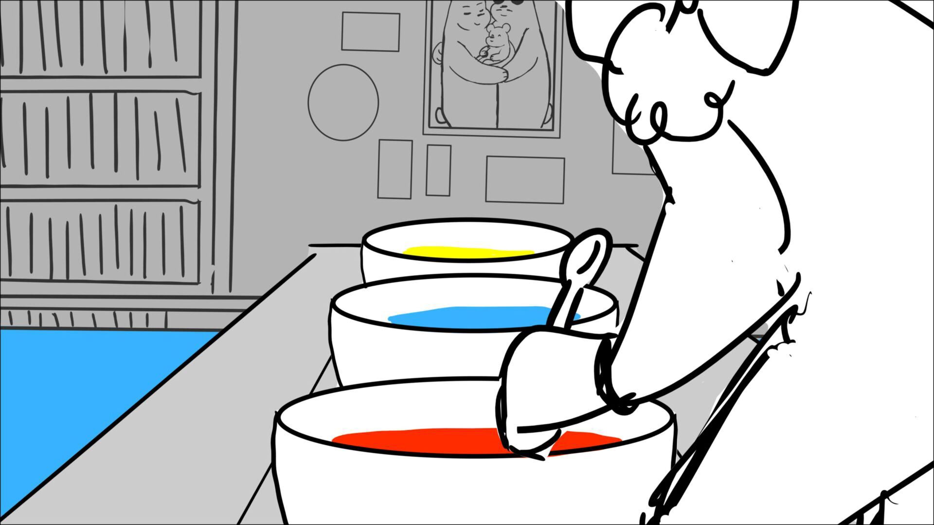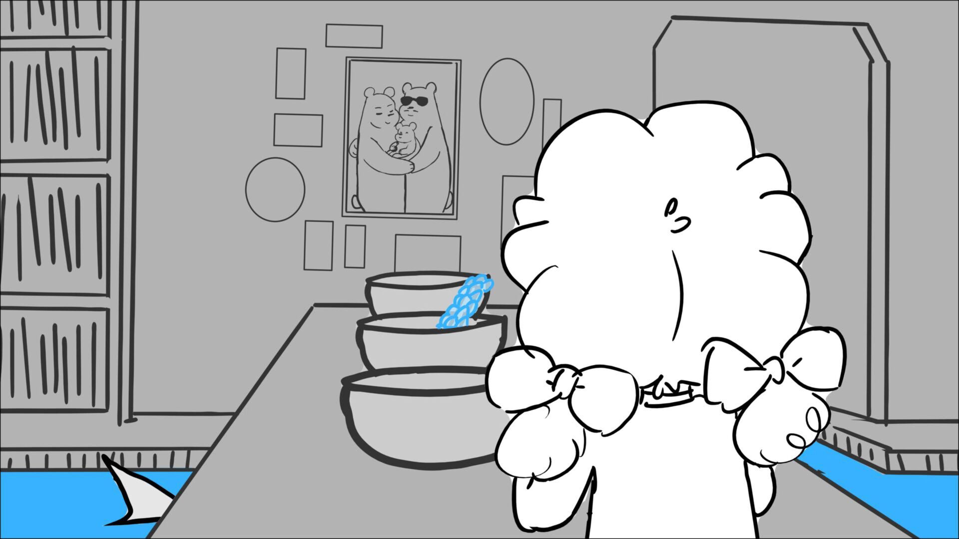 This sequence I had challenged myself to do in 3.5 weeks between November and December, playing around with a more simplified, silly style suited for television. For context: Goldilocks is a seasoned secret agent in a world that is something like “Spy Kids” meets “Shrek.” The Three Bears a crime family that have gotten their paws on a glowing McGuffin, and it’s Goldilock’s job to acquire the goods!