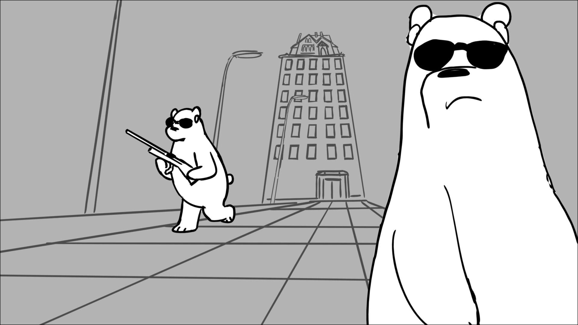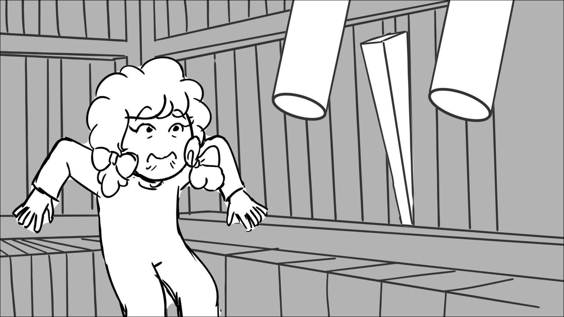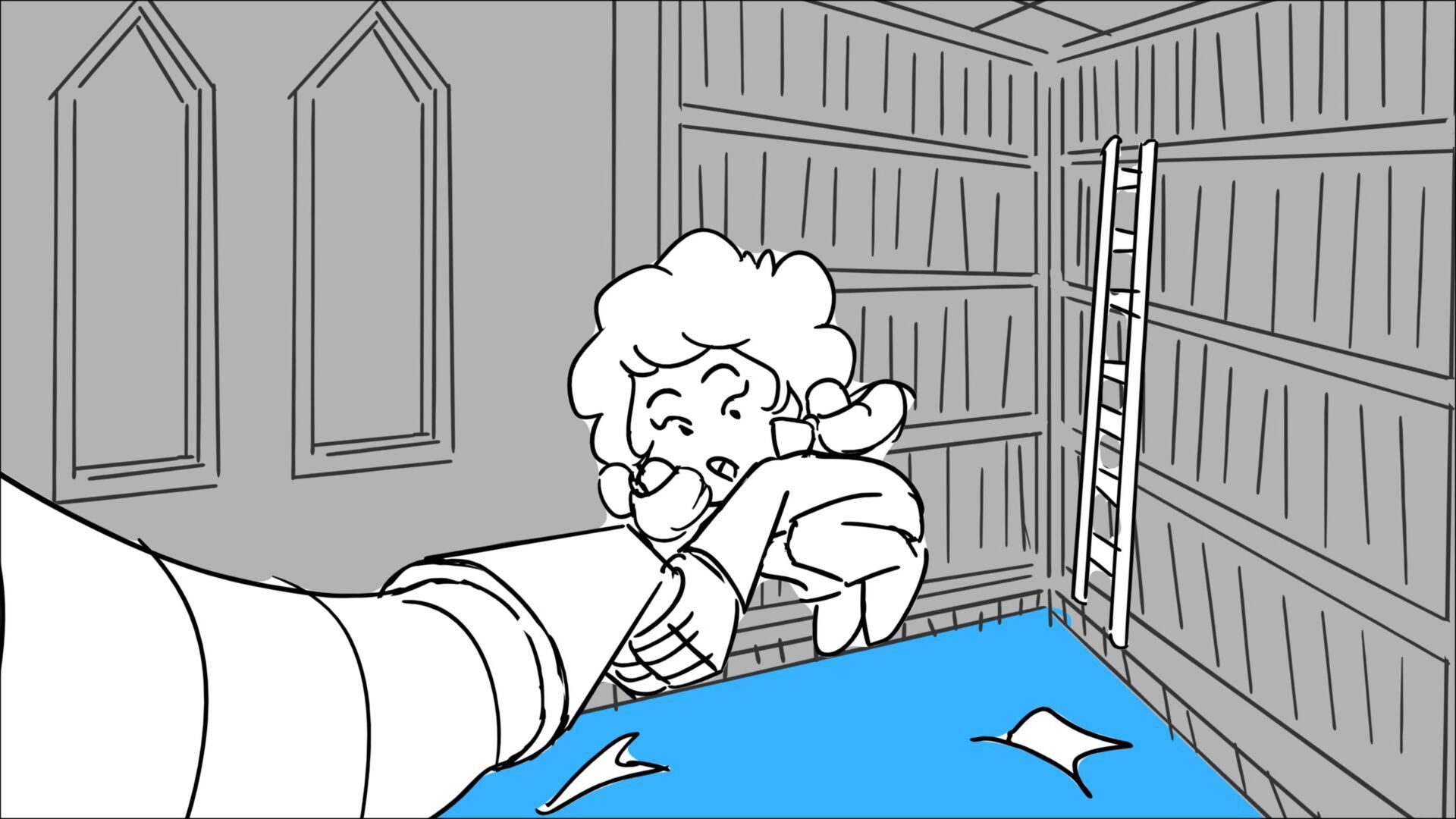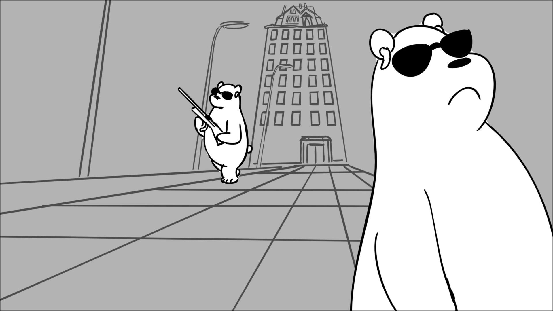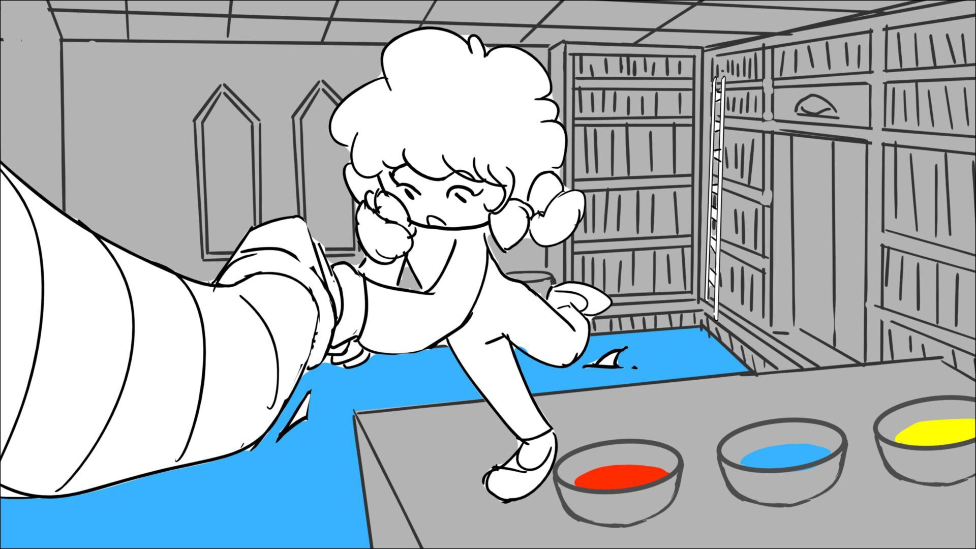 This sequence I had challenged myself to do in 3.5 weeks between November and December, playing around with a more simplified, silly style suited for television. For context: Goldilocks is a seasoned secret agent in a world that is something like “Spy Kids” meets “Shrek.” The Three Bears a crime family that have gotten their paws on a glowing McGuffin, and it’s Goldilock’s job to acquire the goods!