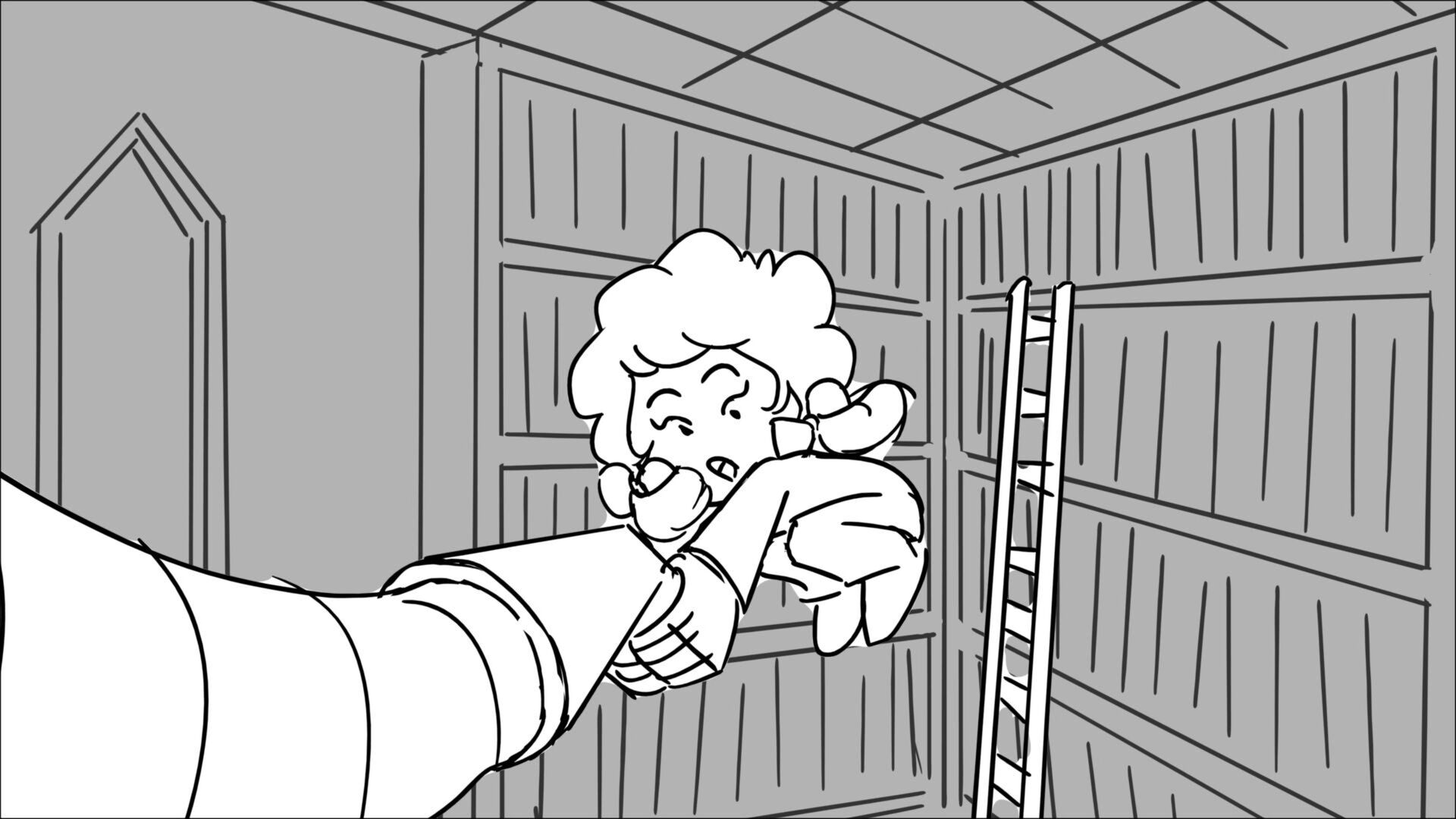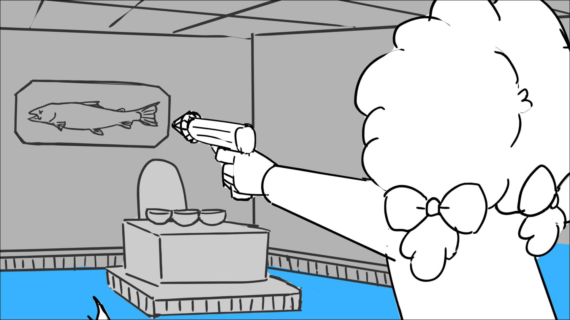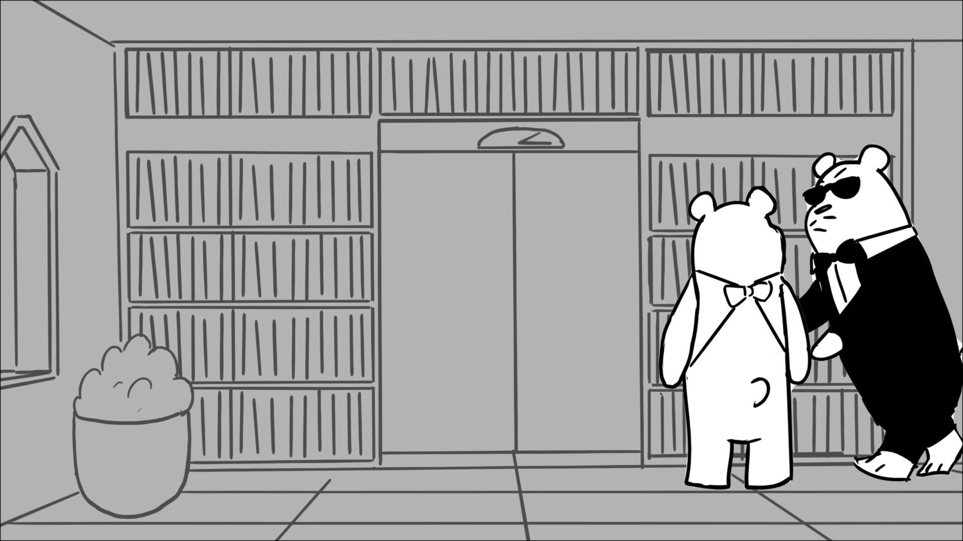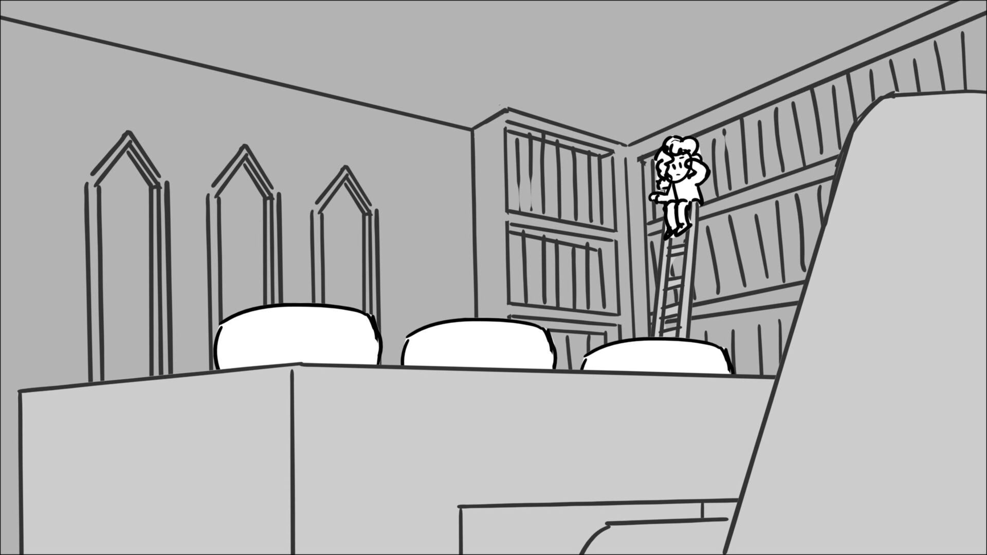 This sequence I had challenged myself to do in 3.5 weeks between November and December, playing around with a more simplified, silly style suited for television. For context: Goldilocks is a seasoned secret agent in a world that is something like “Spy Kids” meets “Shrek.” The Three Bears a crime family that have gotten their paws on a glowing McGuffin, and it’s Goldilock’s job to acquire the goods!