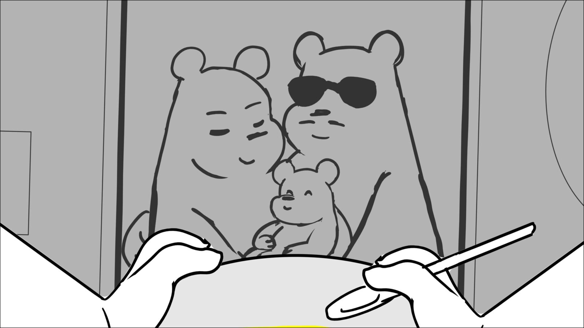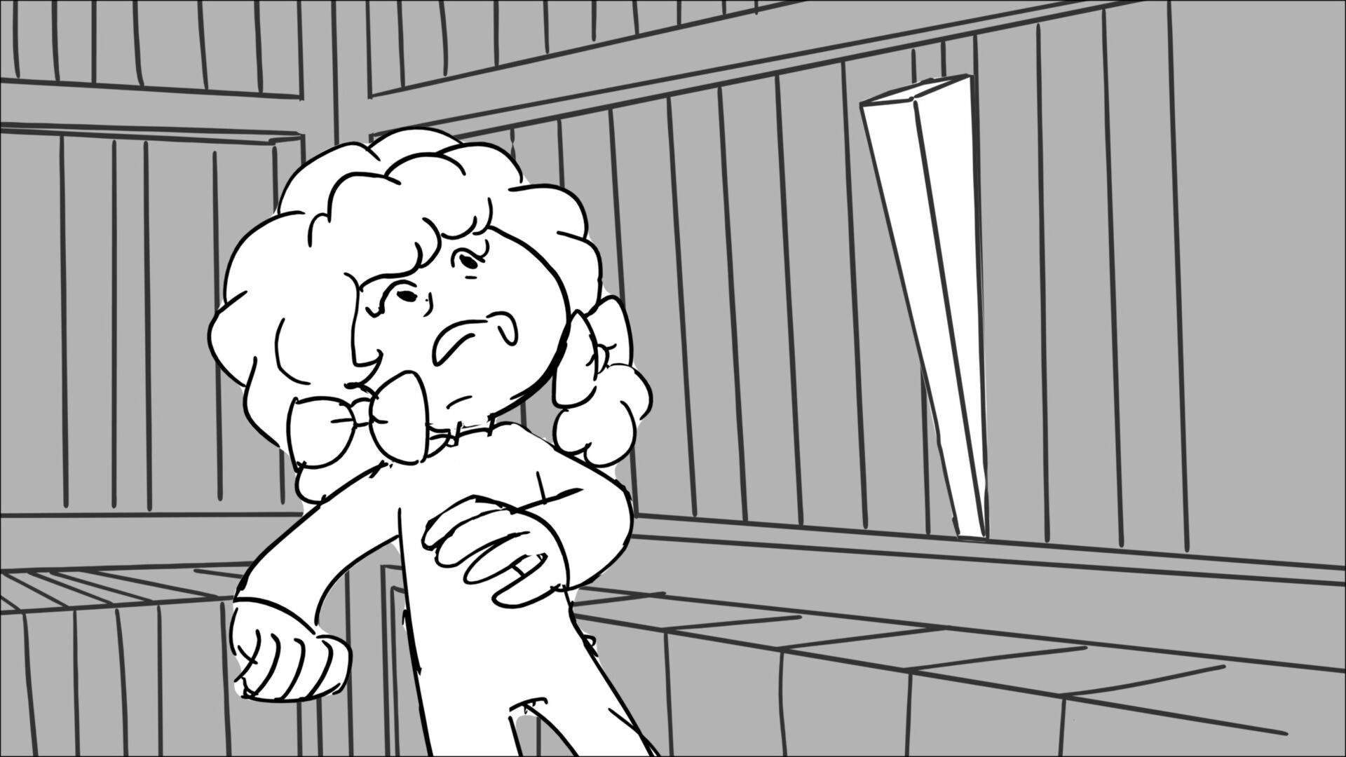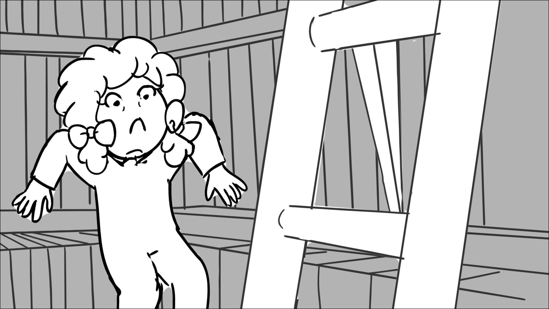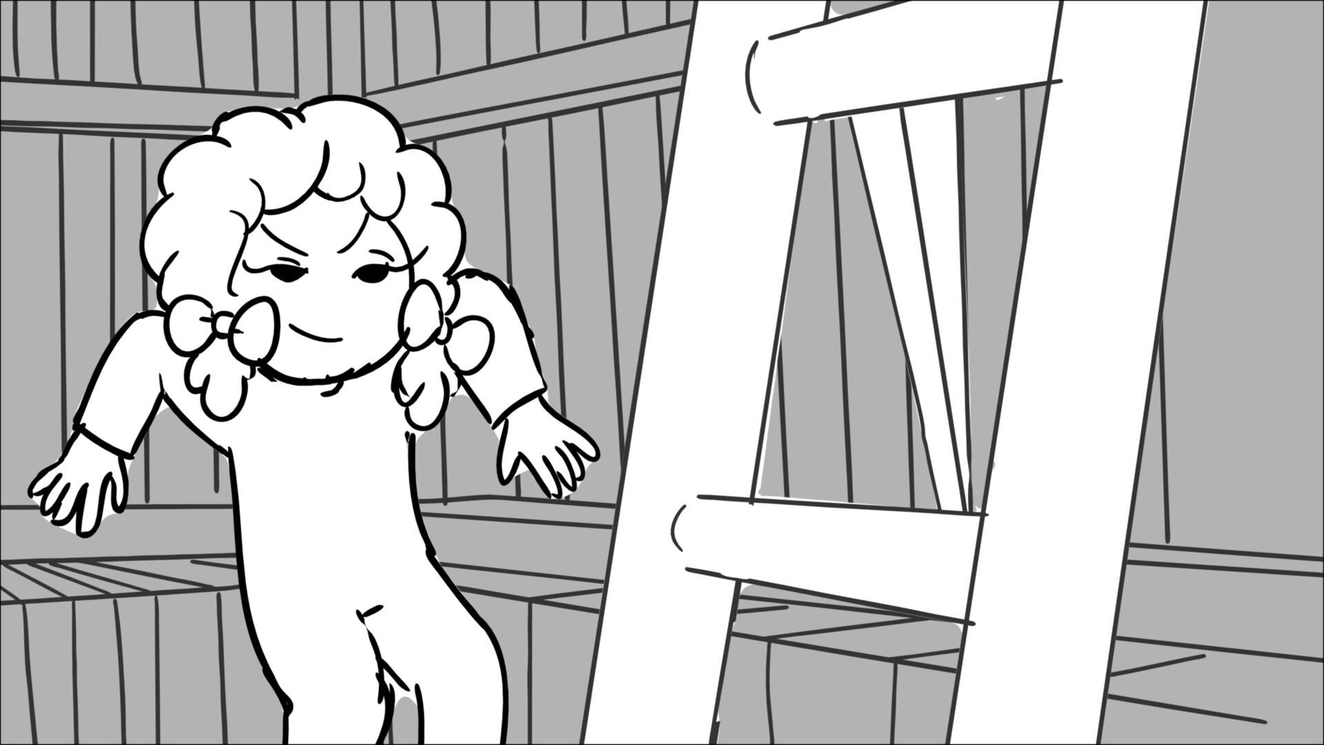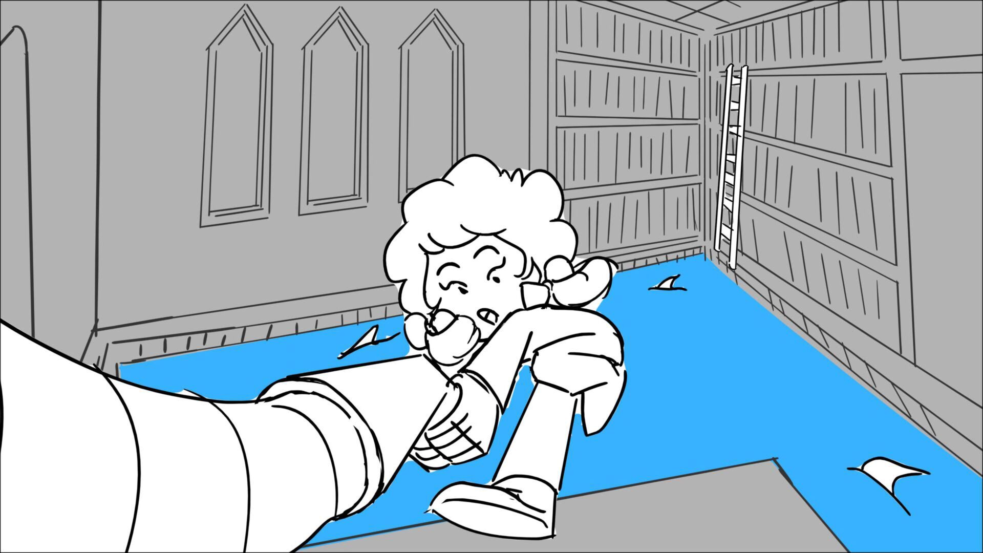 This sequence I had challenged myself to do in 3.5 weeks between November and December, playing around with a more simplified, silly style suited for television. For context: Goldilocks is a seasoned secret agent in a world that is something like “Spy Kids” meets “Shrek.” The Three Bears a crime family that have gotten their paws on a glowing McGuffin, and it’s Goldilock’s job to acquire the goods!