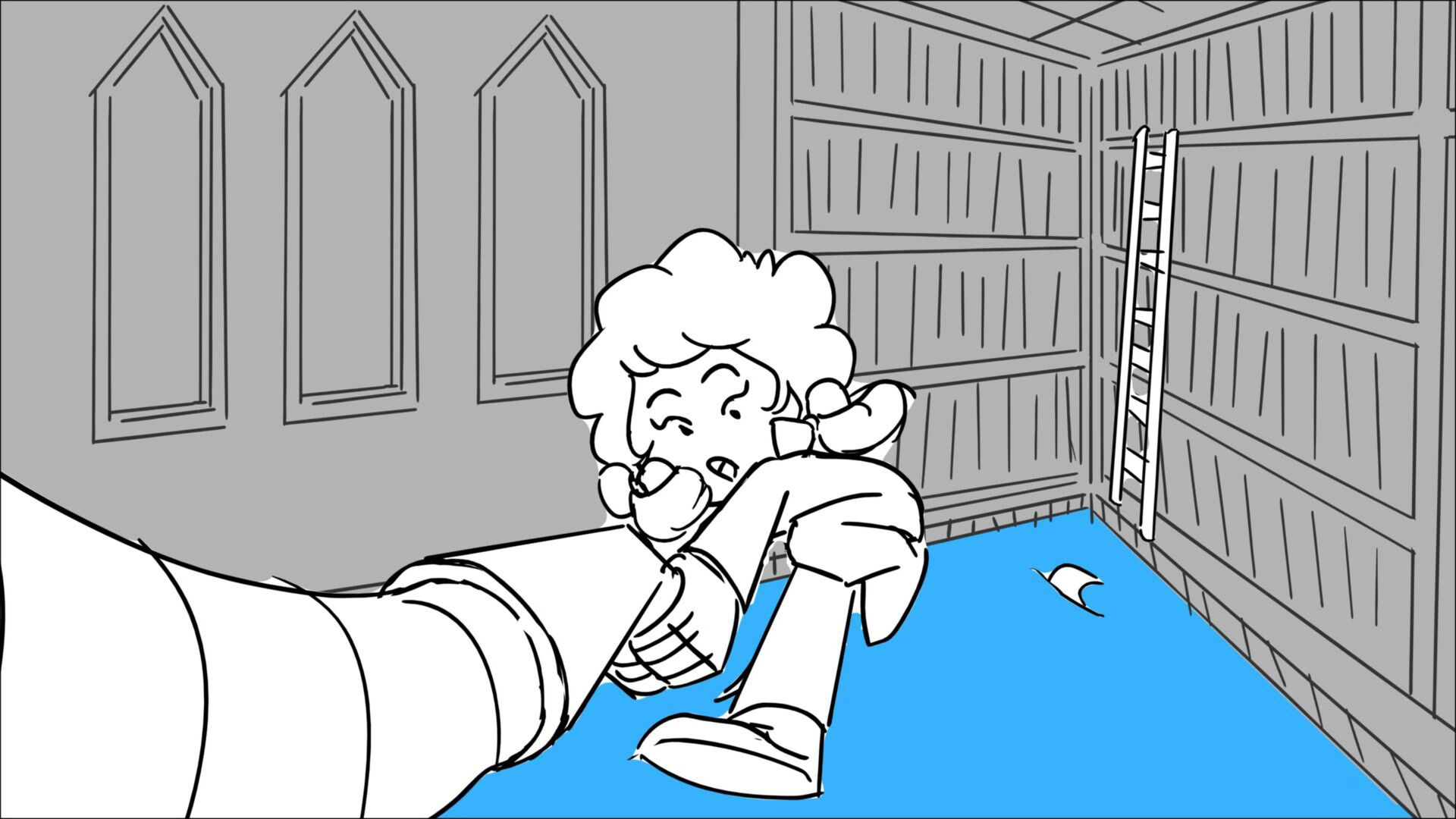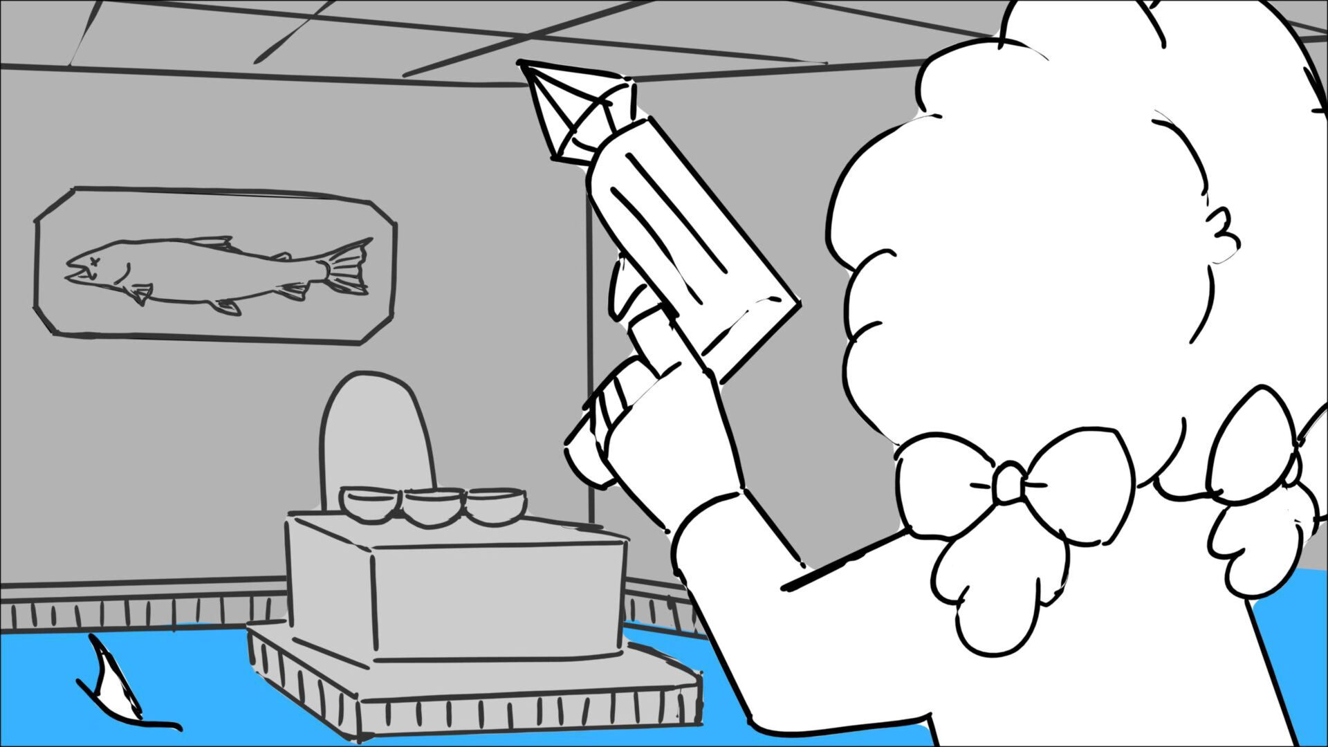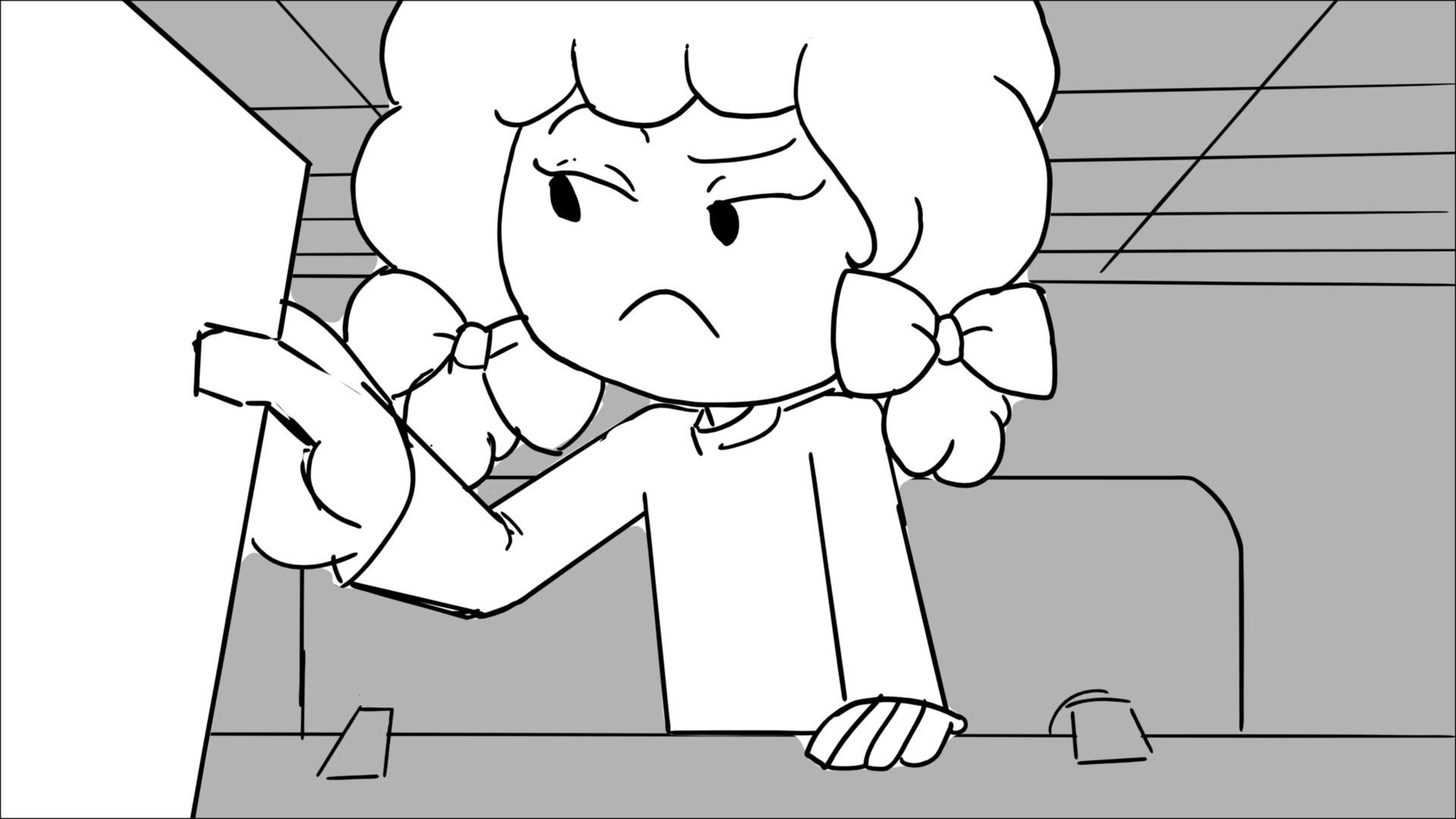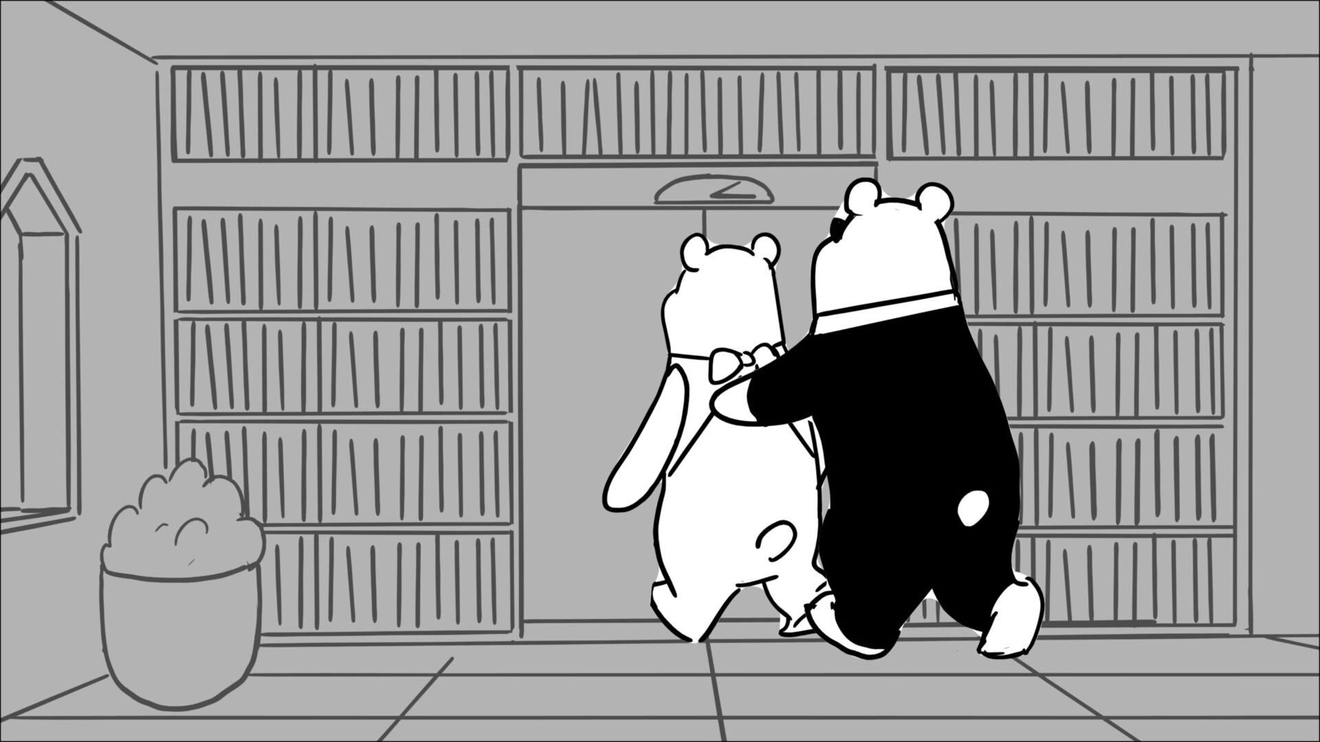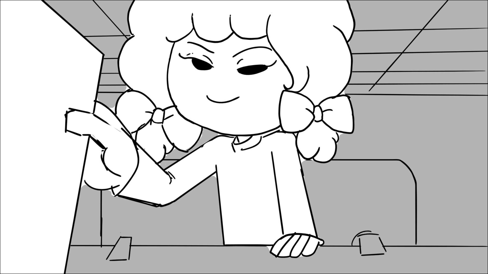 This sequence I had challenged myself to do in 3.5 weeks between November and December, playing around with a more simplified, silly style suited for television. For context: Goldilocks is a seasoned secret agent in a world that is something like “Spy Kids” meets “Shrek.” The Three Bears a crime family that have gotten their paws on a glowing McGuffin, and it’s Goldilock’s job to acquire the goods!