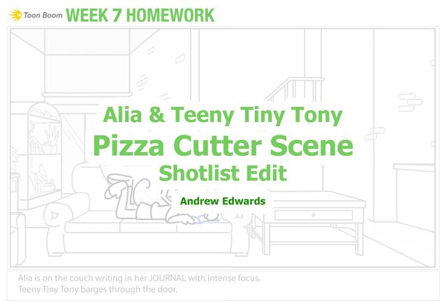 Spec Board for a confrontation between Arlo the Alligator Boy characters: Teeny Tiny Tony and Alia. TV sitcom-styled, drama scene.