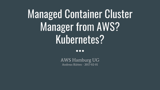 ECS • “Serverless” Container Manager • Simple, fast for just run some container somewhere for a short time period if your team has no ECS Cluster • ECS • If you need a cluster e.g. specific resource requirements • For everything long running it’s cheaper • K8s • The large scale, feature full Container Manager • EKS / Fargate for EKS • We’ll see later in 2018 ;-)