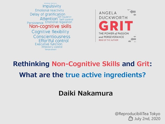 review and meta-analysis of effects of early life non-cognitive skills on academic, psychosocial, cognitive and health outcomes. Nature human behaviour, 2(11), 867–880. https://doi.org/10.1038/s41562-018-0461-x 1. Attention(注意) 2. Cognitive flexibility(認知的柔軟性) 3. Conscientiousness(誠実性) 4. Delay of gratification(衝動制御) 5. Effortful control 6. Emotional reactivity(情動的反応性) 7. Emotional regulation(感情調節) 8. Executive function(実行機能) 9. Impulsivity(衝動性) 10. Inhibitory control(抑制) 11. Persistence(持続性) 12. Self-control(自己制御) 13. Self-regulation(自己調整) 14. Temperament(気質) 15. Working memory(ワーキングメモリ) Academic achievement Literacy Numeracy Psychosocial Internalizing Externalizing General behaviour problems Social skills Cognitive and language Performance IQ Expressive vocabulary Receptive vocabulary General language skills General cognitive development Physical health