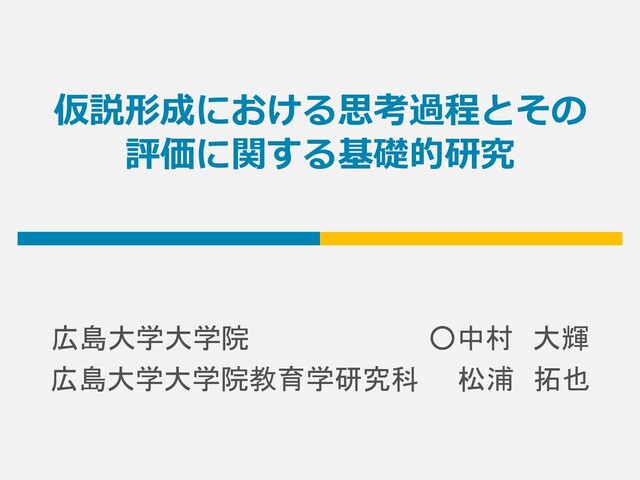 仮説形成における思考過程とその 評価に関する基礎的研究 広島大学大学院 ◦中村 大輝 広島大学大学院教育学研究科 松浦 拓也