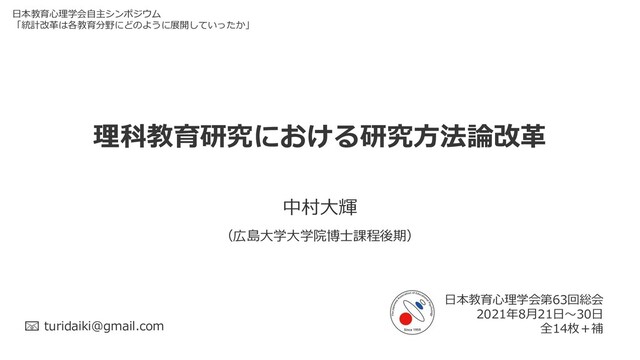 (2019). Application of Cognitive Diagnostic Model in Assessment of Basic Electricity Practical Skills Proficiency among Physics Education Undergraduates in Enugu State University of Science and Technology. British Journal of Education, 7(3), 47–57. • Baker, M. (2016). 1,500 scientists lift the lid on reproducibility. Nature News, 533(7604), 452. • Borsboom, D., Mellenbergh, G. J., & van Heerden, J. (2004). The Concept of Validity. Psychological Review, 111(4), 1061–1071. • Gordon, M., Viganola, D., Bishop, M., Chen, Y., Dreber, A., Goldfedder, B., Holzmeister, F., Johannesson, M., Liu, Y., Twardy, C., Wang, J., & Pfeiffer, T. (2020). Are replication rates the same across academic fields? Community forecasts from the DARPA SCORE programme. Royal Society Open Science, 7(7), 200566. • 原田勇希・久坂哲也・草場実・鈴木誠(2020)「理科教育用メタ認知測定尺度の再考」『理科教育学研究』60(3), 627–641. • Lin, T. J., Lin, T. C., Potvin, P., & Tsai, C. C. (2019). Research trends in science education from 2013 to 2017: a systematic content analysis of publications in selected journals. International Journal of Science Education, 41(3), 367–387. • Lin, T.-C., Lin, T.-J., & Tsai, -C.-C. (2014). Research trends in science education from 2008 to 2012: A systematic content analysis of publications in selected journals. International Journal of Science Education, 36(8), 1346–1372. • Lin, J.-W., Yen, M.-H., Liang, J.-C., Chiu, M.-H., & Guo, C.-J. (2016). Examining the factors that influence students’ science learning processes and their learning outcomes: 30 years of conceptual change research. Eurasia Journal of Mathematics, Science & Technology Education, 12(9), 2617–2646. • Makel, M. C., Hodges, J., Cook, B. G., & Plucker, J. A. (2021). Both questionable and open research practices are prevalent in education research. Educational Researcher, online first, 1–12. • Makel, M. C., & Plucker, J. A. (2014). Facts are more important than novelty: Replication in the education sciences. Educational Researcher, 43(6), 304–316. • Messick, S. (1995). Validity of psychological assessment: Validation of inferences from persons' responses and performances as scientific inquiry into score meaning. American Psychologist, 50(9), 741–749. • 中村大輝・原田勇希・久坂哲也・雲財寛・松浦拓也(印刷中)「理科教育学における再現性の危機とその原因」『理科教育学研究』62(1). • 中村大輝・田村智哉・小林誠・永田さくら・大森一磨・大野俊一・堀田晃毅・松浦拓也(2020)「理科における授業実践の効果に関するメタ 分析―教育センターの実践報告を対象として―」『科学教育研究』44(4),215–233. • 中村大輝・雲財寛・松浦拓也(2021)「理科における認知欲求尺度の再構成および項目反応理論に基づく検討 」『科学教育研究』45(2), 215– 233. • 清水裕士(2018)「心理学におけるベイズ統計モデリング」『心理学評論』 62(1), 22–41. • Taylor, J., Furtak, E., Kowalski, S., Martinez, A., Slavin, R., Stuhlsatz, M., & Wilson, C. (2016). Emergent themes from recent research syntheses in science education and their implications for research design, replication, and reporting practices. Journal of Research in Science Teaching, 53(8), 1216–1231. • 山口一大・岡田謙介(2017)「近年の認知診断モデルの展開」『行動計量学』44(2), 181–198. • 山根悠平・雲財寛・稲田結美・角屋重樹(2020)「理科における研究倫理・研究不正に関する大学生の経験と認識」『理科教育学研究』 61(1), 139–152.