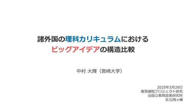 of Science. Atlas of Science Literacy (Project 2061). Mapping K-12 science learning. Washington, DC: Author. http://www.project2061.org/publications/atlas • Bransford, J. D., Brown, A. L., & Cocking, R. R. (Eds.). (2000). How experts differ from novices (Chapter 2). In How people learn: Brain, mind, experience, and school. Washington, DC: National Academy Press. • Erickson, H., Lanning L. & French R. (2017). Concept-based curriculum and instruction for the thinking classroom (2nd ed.), Corwin. • Harlen, W. (Ed.). (2010). Principles and big ideas of science education. Association for Science Education. • Harlen, W. (Ed.). (2015). Working with big ideas of science education. Association for Science Education. • Mitchell, I., Keast, S., Panizzon, D., & Mitchell, J. (2017). Using ‘big ideas’ to enhance teaching and student learning. Teachers and teaching, 23(5), 596-610. • National Research Council [NRC]. (2012). A Framework for K-12 Science Education. Washington, DC: The National Academies Press. • OECD (2019). OECD Future of Education and Skills 2030 Concept Note. https://www.oecd.org/content/dam/oecd/en/about/projects/edu/education-2040/concept- notes/Knowledge_for_2030_concept_note.pdf • OECD (2020). Curriculum Overload: A Way Forward. OECD Publishing, Paris, • Olson, J. K. (2008). Concept-focused teaching. Science and Children, 46(4), 45. • Perkins, D. (1992). Smart schools: From training memories to educating minds. New York, NY: Free Press. • Whitehead, A. N. (1929). The aims of education and other essays. Old Tappan, NJ: Macmillan. • Wiggins G. (2012). What is a “big idea”?. https://www.authenticeducation.org/ae_bigideas/article.lasso?artid=99 • Wiggins, G., & McTighe, J. (2005). Understanding by Design (2nd ed.). Alexandria, VA: Association for Supervision and Curriculum Development. • Wynn, C. M. & Wiggins, A. W. (1997). The five biggest ideas in science. Sidney Harrris. (山崎昶訳(1997).『科学がわかる5つのアイディ ア』. 東京: 海文堂出版.)