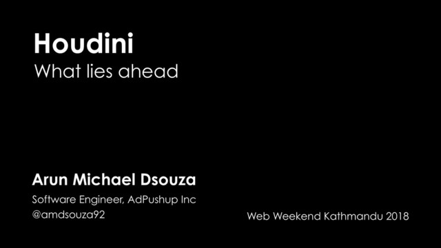 1. Houdini What lies ahead Arun Michael Dsouza Software Engineer, AdPushup