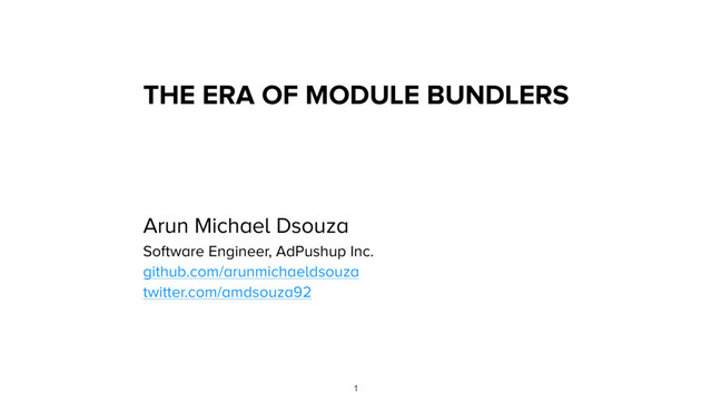 This talk will walk everyone through the concept and practical usage of JavaScript module bundling and optimisation. With the emergence of advanced bundling tools like Webpack, the JavaScript ecosystem has been enriched with the right set of processes and tools required for creating production-ready builds, which is what this talk aims at covering.