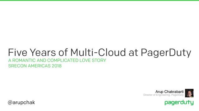 In this talk, I will be going over the decisions and events that led up PagerDuty's multi-cloud environment and how we managed it. I will go through the benefits and problems with our setup and the assumptions that we made that turned out to be completely wrong. By the end of this talk, you will be able to better answer the question of whether a multi-cloud setup is the right thing for your team or company.