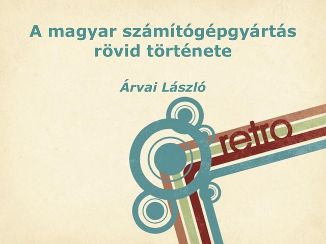 Kicsit rendhagyó előadás keretében nem a jelen és a jövő informatikai világában kalandozunk, hanem visszautazunk a hőskorba (vagy más nézetek szerint a kőkorszakba). Egész pontosan a 70’-es 80’-as évek Magyarországába, ahol megismerkedünk a magyar gyártású és fejlesztésű számítógépekkel, megemlítünk néhány olyan nevet, akik fontos szerepet játszottak abban, hogy amikor még sokaknak csak fekete-fehér TV-je volt, amiben amúgy sem volt hétfőnként adás, akkor számítógépekről, programokról, számítástechnika oktatásról és magyar gyártású számítástechnikai eszközökről álmodtak, beszéltek, illetve nagyon sokat tettek érte, hogy ma ezt mint történelmet lehessen bemutatni. Természetesen nem maradnak ki a főszereplők, a számítógépek, szó lesz megahertzes órajelekről, kilobájtos memóriákról és többféle ehhez kapcsolódó elképesztő teljesítményről és technikai megoldásról.