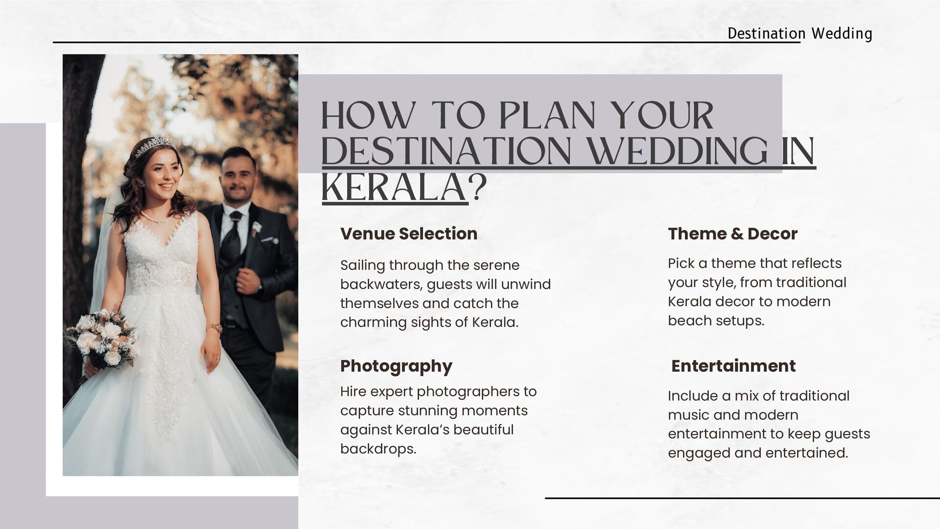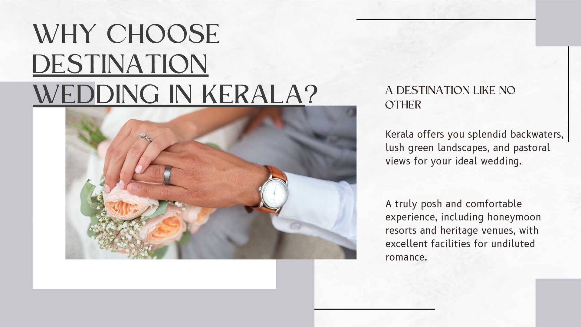 Kerala is a destination wedding that makes magical combinations of scenic backwaters, serene beaches, misty hills, and a rich culture. With beautiful resorts, cultural experiences, and incredible cuisine, Kerala is the perfect backdrop for a dream wedding. With stunning venues, it becomes a grand wedding that would get etched in your memory forever with warm hospitality.