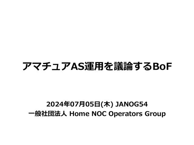 アマチュアAS運用を議論するBoF 2024年07月05日(木) JANOG54 一般社団法人 Home NOC Operators Group