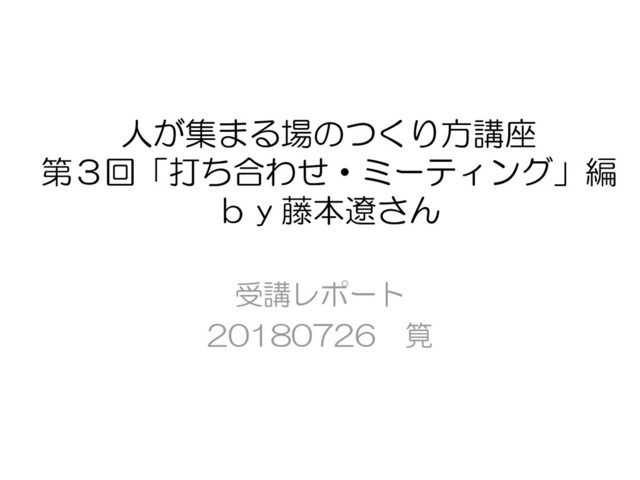 藤本遼さんのセミナー第3回「打合せ・ミーティング編」の受講レポートです。