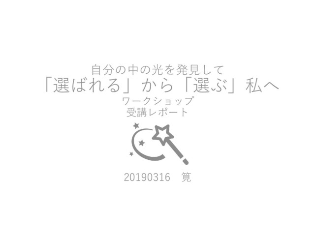 自分の中の光を発見して 「選ばれる」から「選ぶ」私へ ワークショップ 受講レポート 20190316 筧