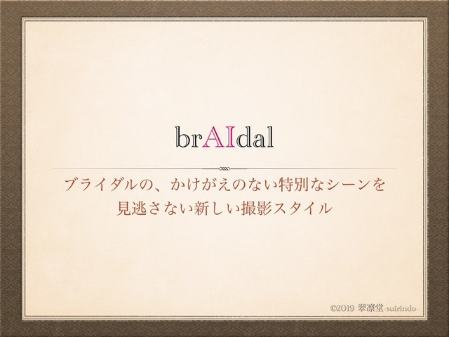 ©2019 ਯ႒ಊ-suirindo- brAIdal ϒϥΠμϧͷɺ͔͚͕͑ͷͳ͍ಛผͳγʔϯΛ ݟಀ͞ͳ͍৽͍͠ࡱӨελΠϧ