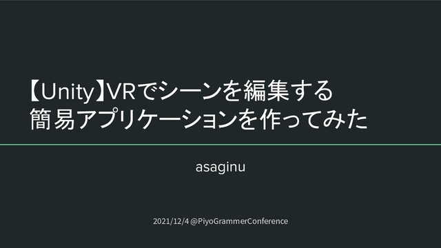 【Unity】VRでシーンを編集する 簡易アプリケーションを作ってみた asaginu 2021/12/4 @PiyoGrammerConference