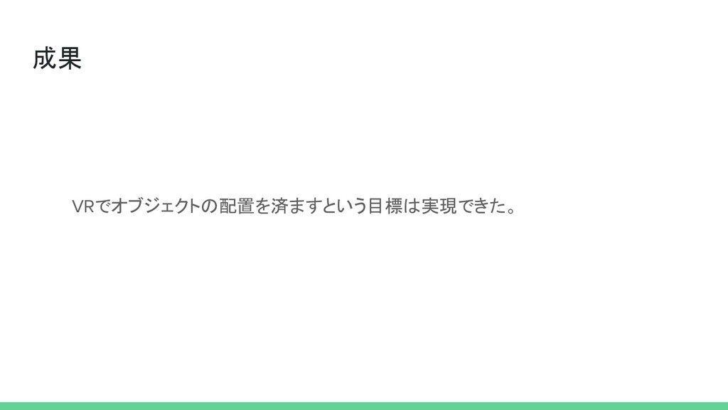成果 VRでオブジェクトの配置を済ますという目標は実現できた。