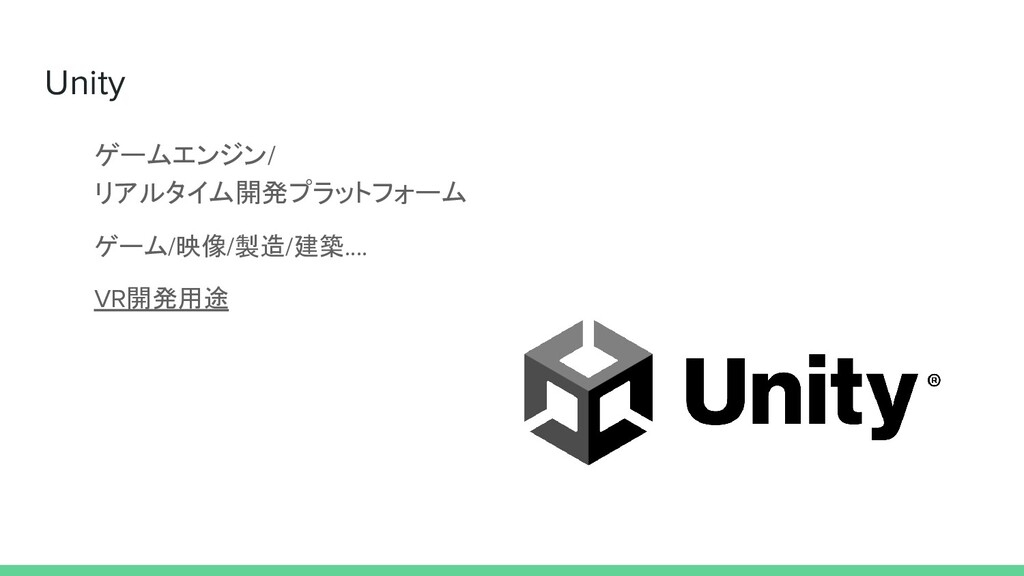 Unity ゲームエンジン/ リアルタイム開発プラットフォーム ゲーム/映像/製造/建築.... VR開発用途