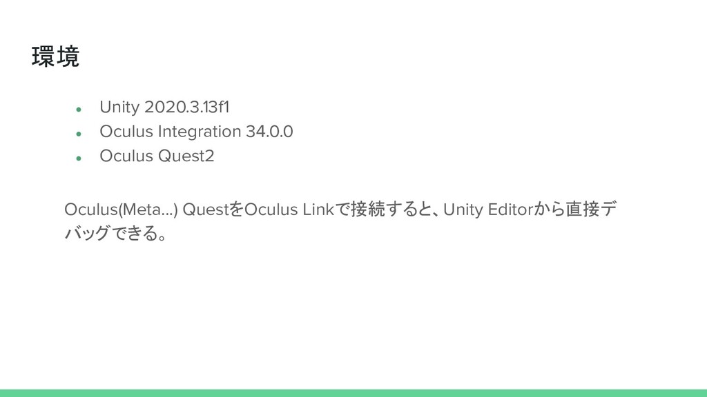 環境 • Unity 2020.3.13f1 • Oculus Integration 34.0.0 • Oculus