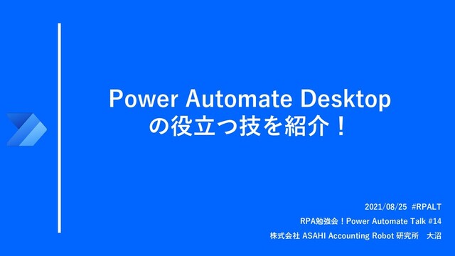 株式会社 ASAHI Accounting Robot 研究所 大沼 Power Automate Desktop の役立つ技を紹介!