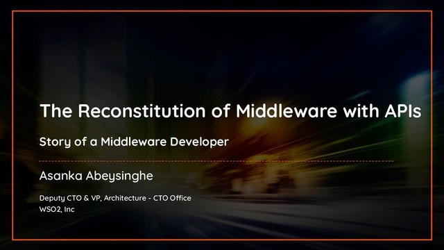 In this talk, Asanka is going to deep-dive into an API-centric, decentralized, and code-first approach to fill the void of middleware and make the application developer productive again.