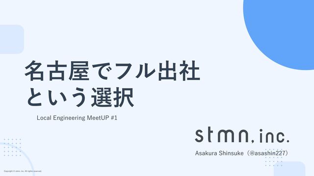 $PQZSJHIUTUNO JOD"MMSJHIUTSFTFSWFE $PQZSJHIUTUNO JOD"MMSJHIUTSFTFSWFE ໊ݹͰϑϧग़ࣾ ͱ͍͏બ -PDBM&OHJOFFSJOH.FFU61 "TBLVSB4IJOTVLFʢ!BTBTIJOʣ
