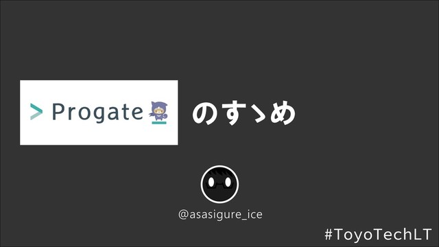 豊田高専で行われた第2回ToyoTech_LTのスライドです。Progateというプログラミング学習サイトの紹介です。
