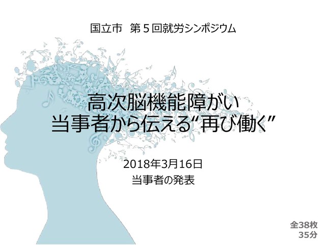高次脳機能障がい 当事者から伝える“再び働く” 2018年3月16日 当事者の発表 国立市 第5回就労シンポジウム 全38枚 35分