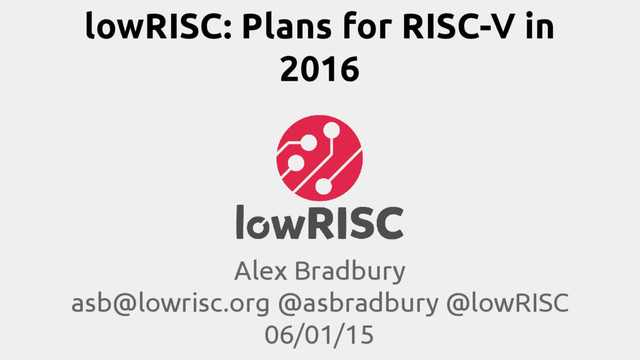 open source hardware designs is as common and accepted as for open source software • Thank you – Donors, contributors, collaborators, technical advisory board, supporters • See also: lowrisc.org, our mailing list, phab.lowrisc.org, @lowRISC • Email: [email protected] • Join our team - job advert soon, informal enquiries to [email protected] • Stickers!