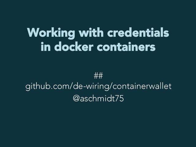 Applications need configuration. Some of that configuration data is sensitive. This deck introduces the idea of a wallet container. Using GPG and TLS it securely stores and transport sensitive configuration data. https://github.com/de-wiring/containerwallet