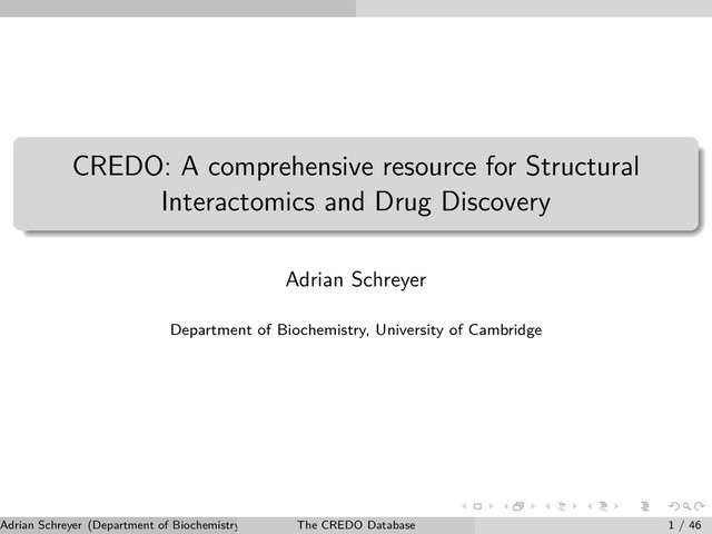 Adrian Schreyer Department of Biochemistry, University of Cambridge Adrian Schreyer (Department of Biochemistry, University of Cambridge) The CREDO Database 1 / 46