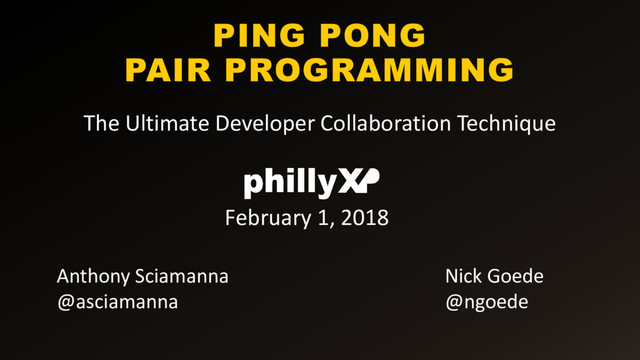 Ping Pong Pair Programming talk from PhillyXP user group.