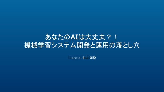 あなたのAIは大丈夫?! 機械学習システム開発と運用の落とし穴 Citadel AI 杉山 阿聖