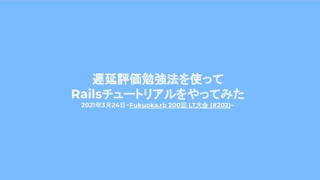 遅延評価勉強法を使って Railsチュートリアルをやってみた 2021年3月24日~Fukuoka.rb 200回 LT大会 (#202)~