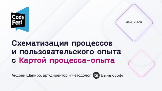 Слушателям предлагается авторский метод схематизации процесса и пользовательского опыта. Метод продолжает и развивает идеи, появившиеся в CJM, Service Blueprint и BPMN. Схема метода — направленный граф, состоящий из ключевых точек и подробностей, происходящего в них. Строгой нотации CJM не существует, автором разработана нотация и пошаговый подход к тому как создавать схемы процесса.