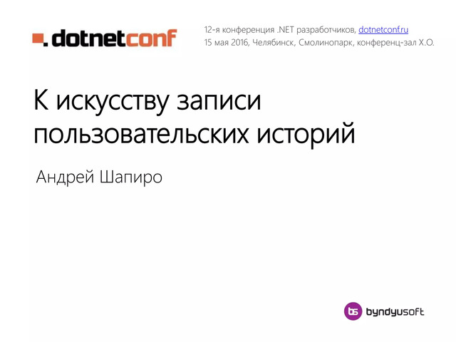 Доклад на 12-й конференции DotnetConf, 15 мая 2016