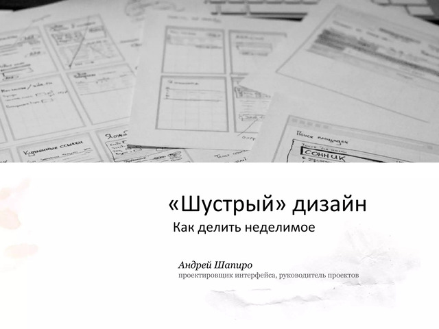 Общее стремление одновременно повысить скорость и качество разработки, приводит к тому, что специалисты в области опыта взаимодействия всё чаще включаются в agile-команды. Как лучше устроить процесс с этом случае. Что следует проектировать сначала, что можно проектировать независимо и что можно отложить на будущие итерации без страха получить несочленимые компоненты. Как без ущерба разделить то, что, по определению, должно быть целостным.