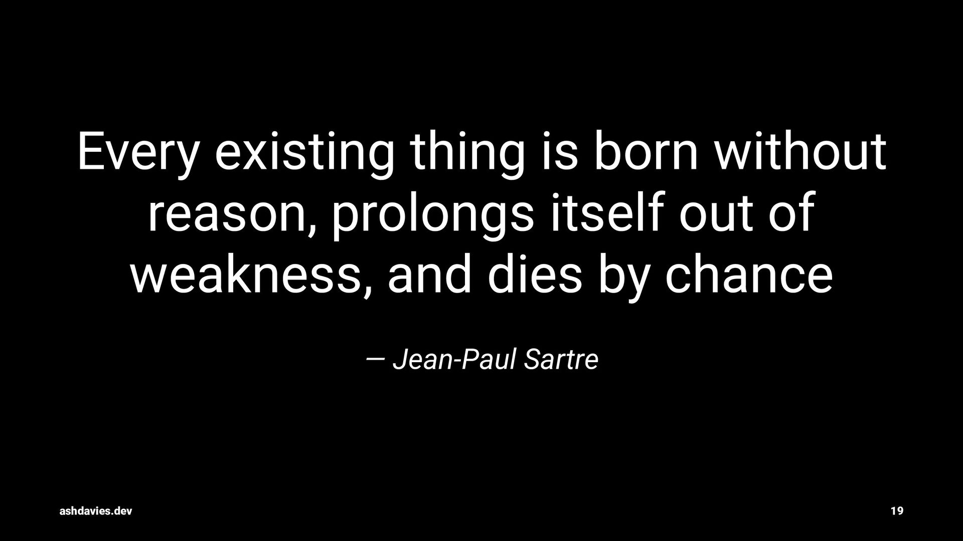 of weakness, and dies by chance — Jean-Paul Sartre ashdavies.dev 19