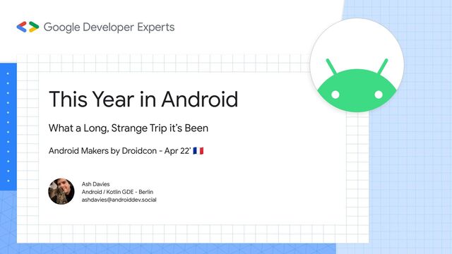 Been Android Makers by Droidcon - Apr 22’ 󰏃 Ash Davies Android / Kotlin GDE - Berlin [email protected]
