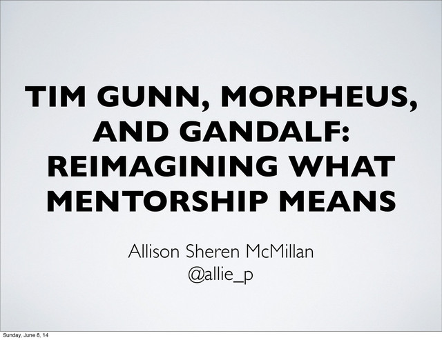 • The importance of mentoring for individuals and organizations: Mentoring: a mutually beneficial relationship between mentor and mentee that serves to create strong organizational ties while offering networking opportunities. Development and Learning in Organizations, Vol. 24 Iss: 3, pp. 27-30 • Good talk about Good teaching by Parker Palmer: http://www.couragerenewal.org/parker/writings/good-talk • The Heart of a Teacher by Parker Palmer, http://www.couragerenewal.org/parker/writings/heart-of-a-teacher • Evidence of mentor learning and development: an analysis of New Zealand mentor/mentee professional conversations. Professional Development in Education, v. 40, iss 1, 2014. pp. 36-55. • http://exercism.io/help/nitpick Sunday, June 8, 14