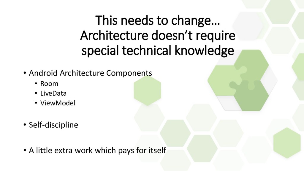Using architecture components even beginners can now easily implement "Clean Architecture" in their apps.