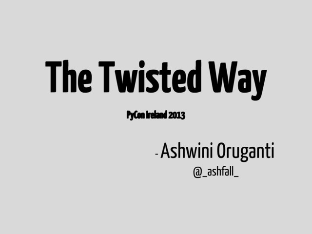 Further, we will try and understand the philosophy and motivation behind the asynchronous event-driven model, and discuss the Twisted reactor and event-loop architecture. Finally, we'll try to contemplate and demystify "The Twisted Way" of doing things bolstered by excerpts from Tao Te Ching and The Tao of Programming.