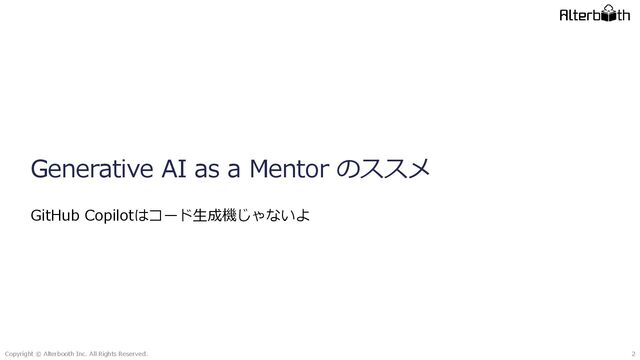 Generative AI as a Mentor のススメ GitHub Copilotはコード生成機じゃないよ Copyright ©