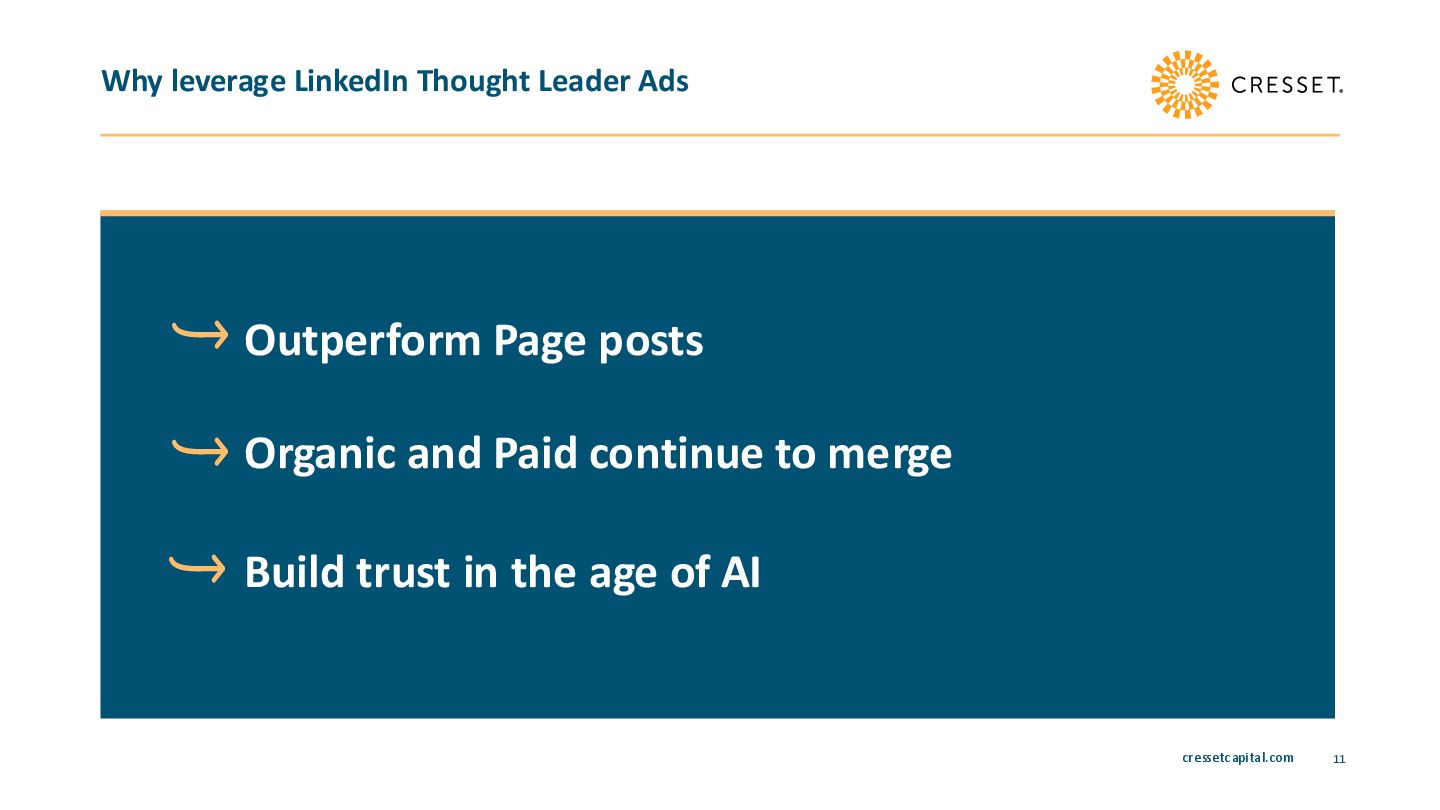 2. Leverage LinkedIn thought leader ads to stay top-of-mind and drive sales