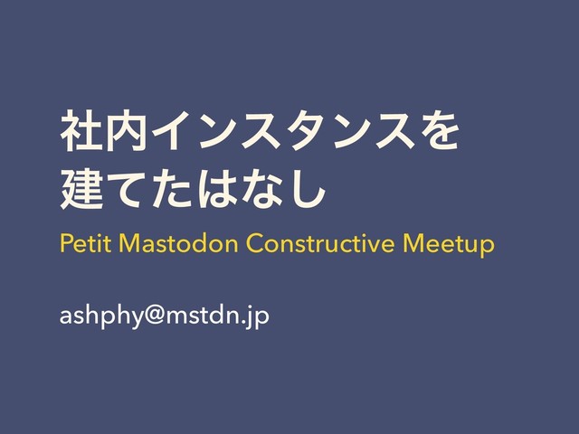 ࣾΠϯελϯεΛ ݐͯͨͳ͠ Petit Mastodon Constructive Meetup