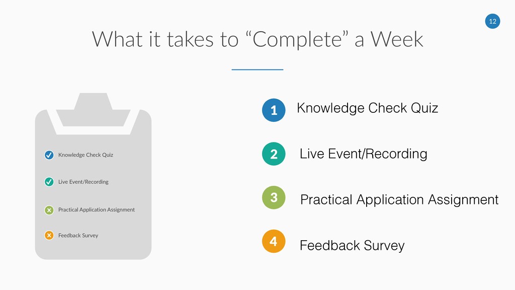 3 4 Knowledge Check Quiz Live Event/Recording Practical Application Assignment Feedback Survey Knowledge Check Quiz Live Event/Recording Practical Application Assignment Feedback Survey