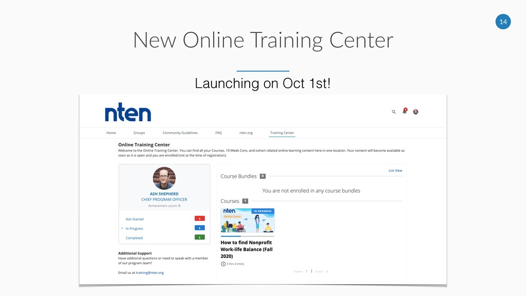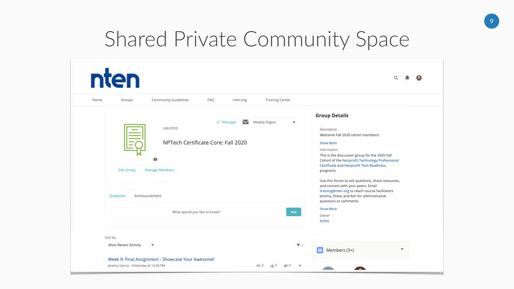 Center & Online Community Space Access to Week 1 Content Access to Introductions Thread *Additional NTR Details